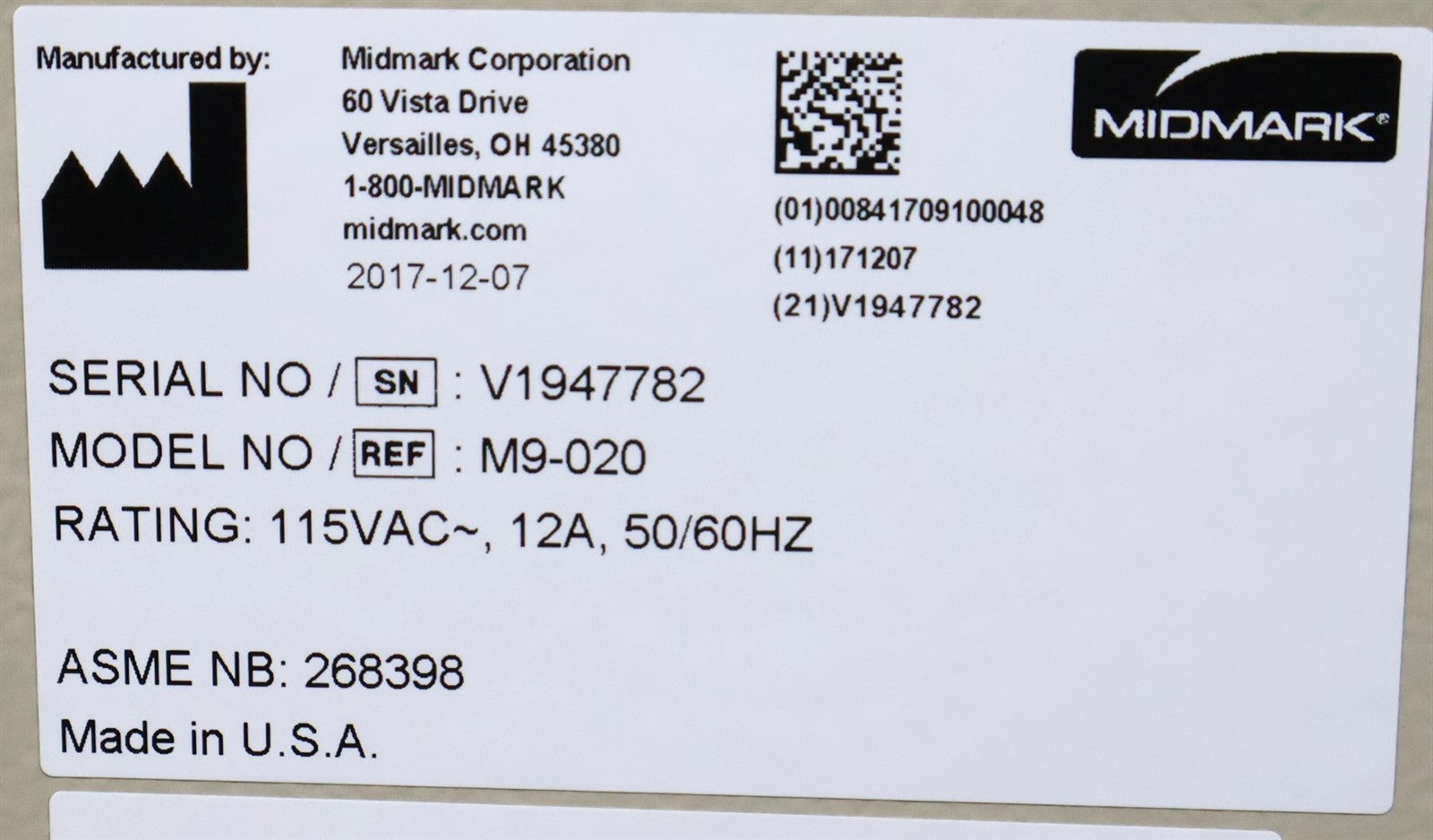 • Serial Number: V1947782