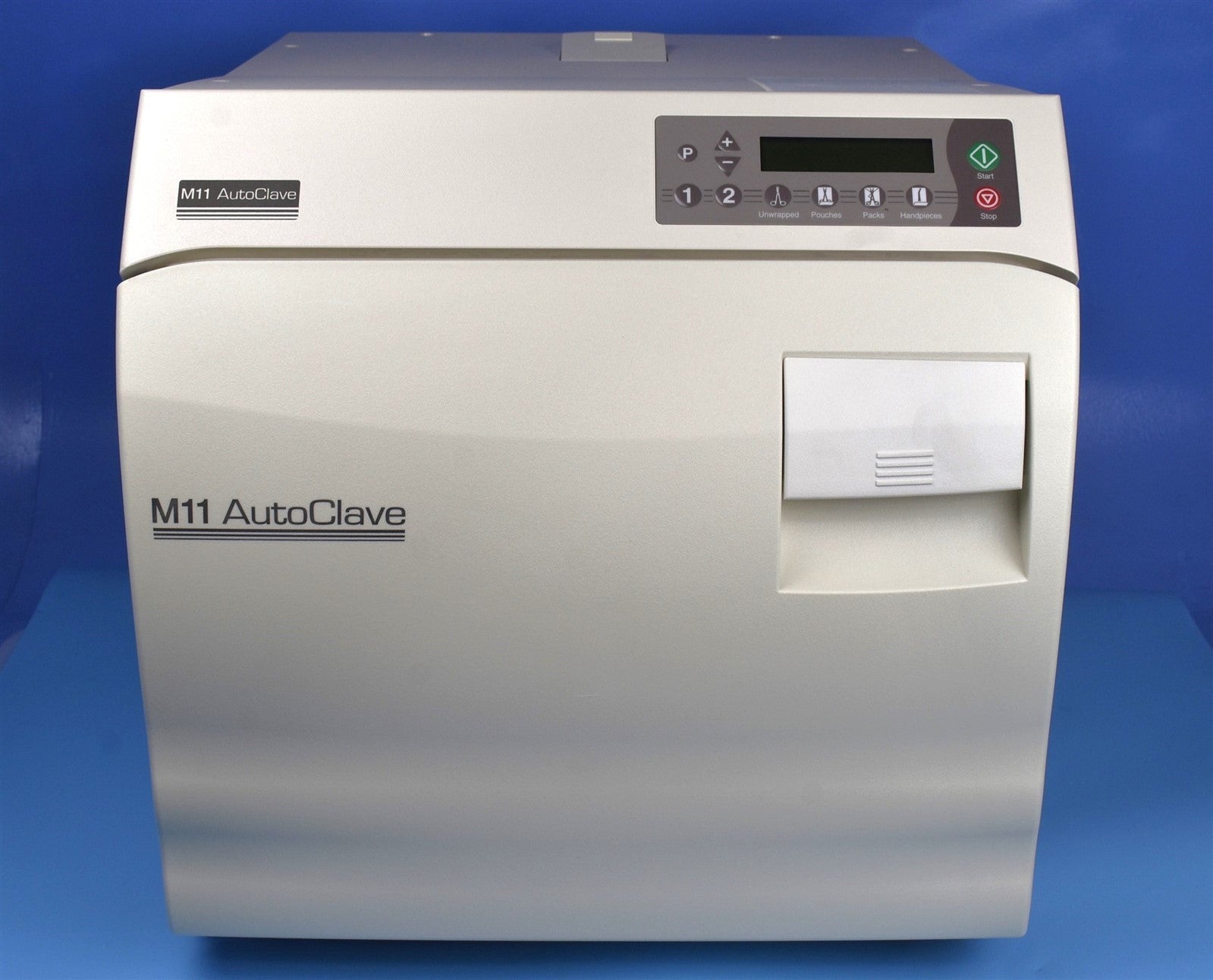 M11 NEW BODY Prior to testing this autoclave, it was disassembled down to the bare chassis, cleaned, rebuilt and refurbished. Removed and rebuilt the Door Latch assembly. Cleaned Reservoir Tank and installed a new Drain Hose and Condenser Coil. Installed a new Fill / Vent Valve Manifold Assembly and Air Valve Solenoid. Installed a new Door Gasket, Dam Gasket, Heating Element, and Mesh Water Filters. Installed a new Keypad. Cleaned the Sterilizing Trays and Rack. Then proceeded to test the sterilizer. Connected it to a 120 volt power source, added distilled water and ran the autoclave through all it's preset sterilizing and drying cycles. To verify that this autoclave is achieving it's required maximum sterilizing temperature, it was temperature tested using a Max Register Thermometer, and found to reach 273 F for an entire cycle.