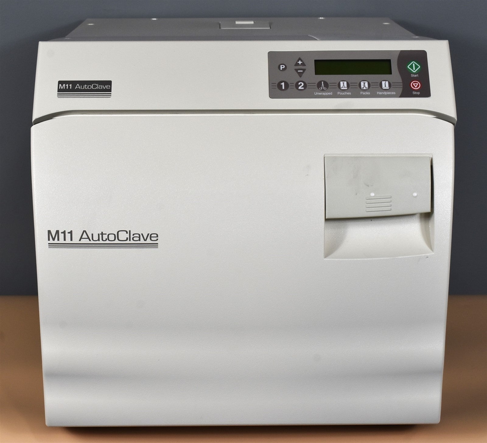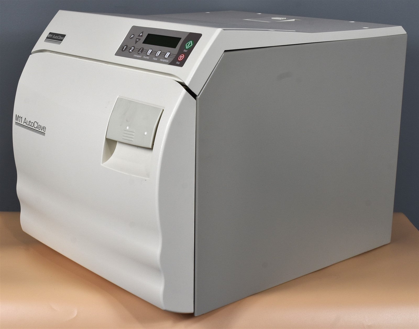 Prior to testing this autoclave, it was disassembled down to the bare chassis, cleaned, rebuilt and refurbished. Removed and rebuilt the Door Latch assembly. Cleaned Reservoir Tank and installed a new Drain Hose and Condenser Coil. Installed a new Fill / Vent Valve Manifold Assembly and Air Valve Solenoid. Installed a new Door Gasket, Dam Gasket, Heating Element, and Mesh Water Filters. Installed a new Keypad. Cleaned the Sterilizing Trays and Rack. Then proceeded to test the sterilizer. Connected it to a 120 volt power source, added distilled water and ran the autoclave through all it's preset sterilizing and drying cycles. To verify that this autoclave is achieving it's required maximum sterilizing temperature, it was temperature tested using a Max Register Thermometer, and found to reach 273 F for an entire cycle.