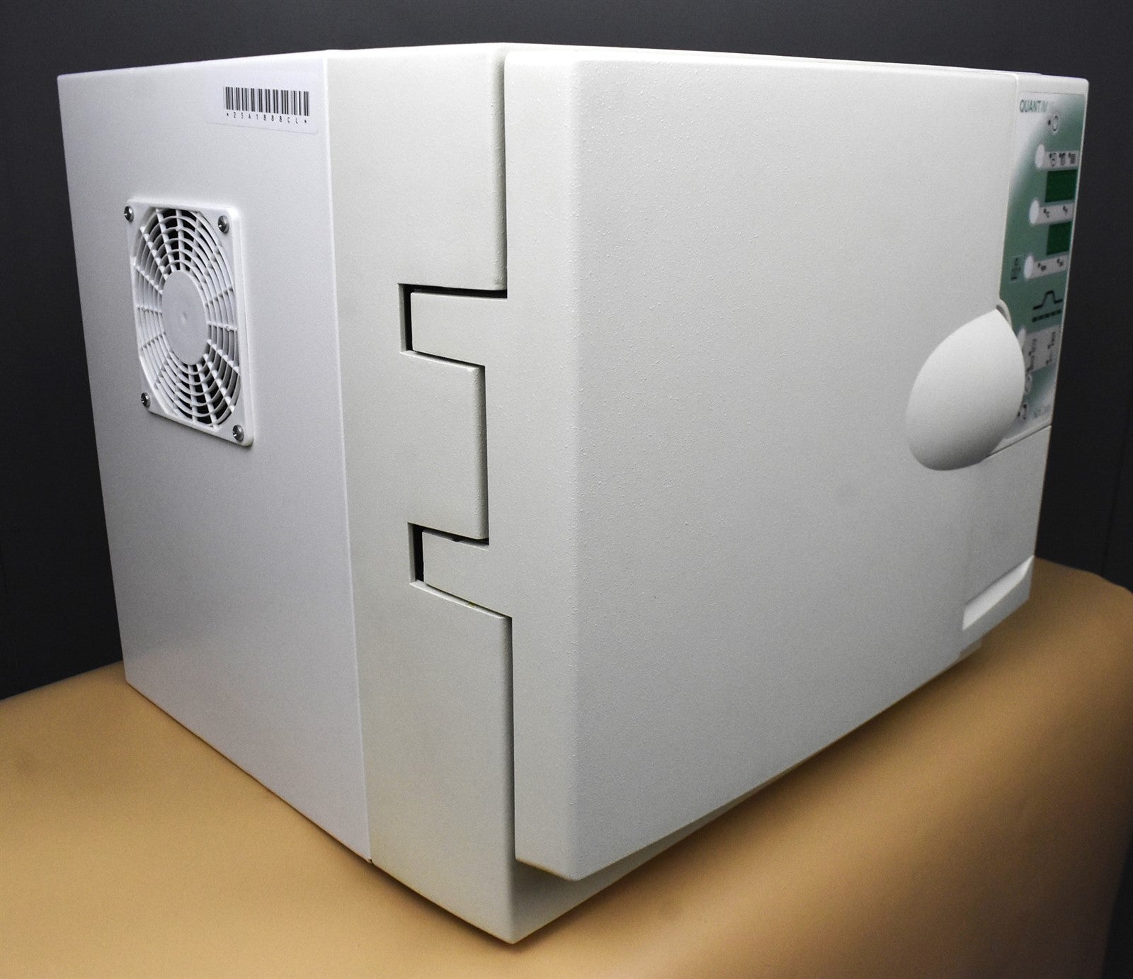 Your purchase will NOT include: This product is pre-owned and may not include the same accessories as a new, unused unit. - other accessories not shown or listed here.Be the first Dentist on your block to own this rare and collectable SciCan QuantIM 16 autoclave!! This autoclave is in near mint condition with less then 200 cycles run on it. Add it to your collection TODAY!!! This autoclave was inspected inside and out before testing began, and was found to be in excellent cosmetic and mechanical condition. Then distilled water was added, it was connected to a 120 volt power source and testing began. This sterilizer was run through all it's preset sterilizing and drying cycles several times. It was then temperature tested to verify that it is achieving it's maximum sterilizing temperature using a Max Register Thermometer, and found to maintain 273 F for an entire cycle.