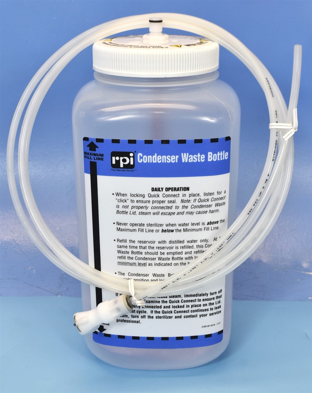 1- Cassette with new seal, 1- Unwrapped instrument rack, 1- Power Cord, 1- Waste Bottle, 1- Drain Hose.