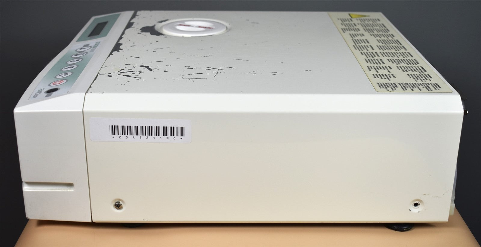 This autoclave was put through an initial functionality test, to prove that it does indeed work. Once it was proven to operate correctly, it was disassembled down to it's bare chassis and cleaned up, then reassembled. To insure it continued future operation, preventive maintenance parts were installed, which include, a new Water Pump, Air Valve, Check Valve, Safety Valve, Compressor Air Filter and Biological Filter. The Reservoir Tank was cleaned and flushed and a new Reservoir Cap, Reservoir Filter and Water Pump Filter were installed. The sterilizing cassette was also cleaned and a new Cassette Seal was installed. Prior to running test cycles on this sterilizer, the temperature sensors were calibrated. Then this autoclave was tested through all it's preset sterilizing and drying cycles multiple times. To verify that this unit is achieving it's highest maximum required sterilization temperature, it was tested using a Max Register Thermometer and found to exceed 273 F while running a sterilization cycles