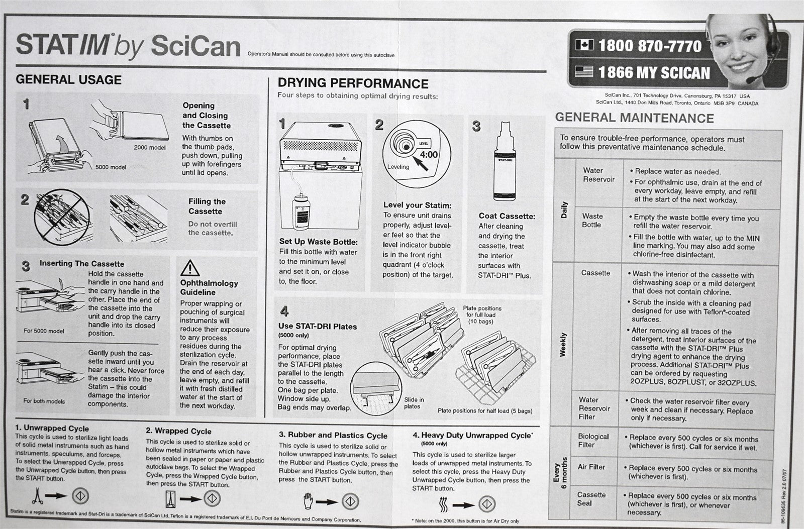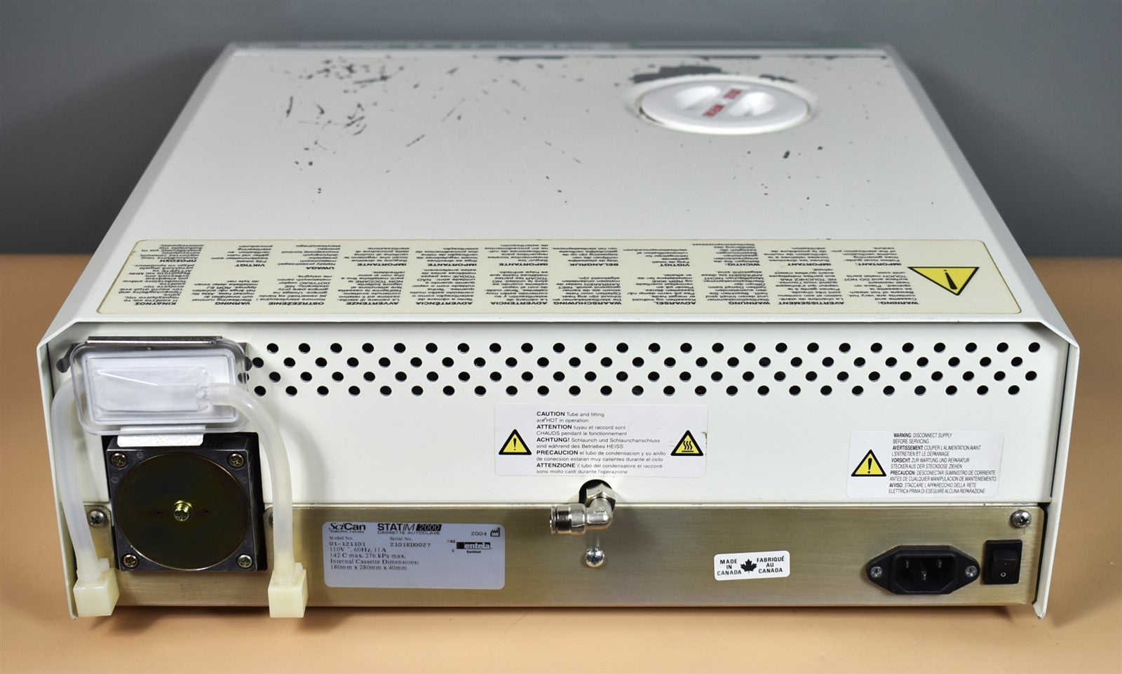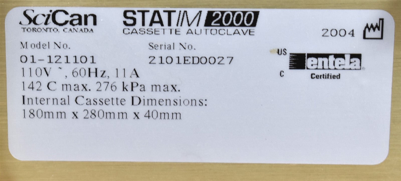 Your purchase will NOT include: This product is pre-owned and may not include the same accessories as a new, unused unit. - other accessories not shown or listed here.SciCan STATIM 2000 – Fast and Reliable AutoclaveEfficient Sterilization Delivers rapid steam sterilization for dental instruments. Ensures safe and thorough sterilization with minimal downtime.User-Friendly Operation Intuitive controls and simple cycle selection for quick operation. Compact design fits easily into operatories or labs.Durable and Reliable Constructed with high-quality materials for long-lasting performance. Designed for consistent, dependable daily use in busy practices.SciCan STATIM 2000 — A trusted autoclave for fast, safe, and efficient instrument sterilization.This autoclave was put through an initial functionality test, to prove that it does indeed work. Once it was proven to operate correctly, it was disassembled down to it's bare chassis and cleaned up, then reassembled. To insure it continued future operation, preventive maintenance parts were installed, which include, a new Water Pump, Air Valve, Check Valve, Safety Valve, Compressor Air Filter and Biological Filter. The Reservoir Tank was cleaned and flushed and a new Reservoir Cap, Reservoir Filter and Water Pump Filter were installed. The sterilizing cassette was also cleaned and a new Cassette Seal was installed. Prior to running test cycles on this sterilizer, the temperature sensors were calibrated. Then this autoclave was tested through all it's preset sterilizing and drying cycles multiple times. To verify that this unit is achieving it's highest maximum required sterilization temperature, it was tested using a Max Register Thermometer and found to exceed 273 F while running a sterilization cycles