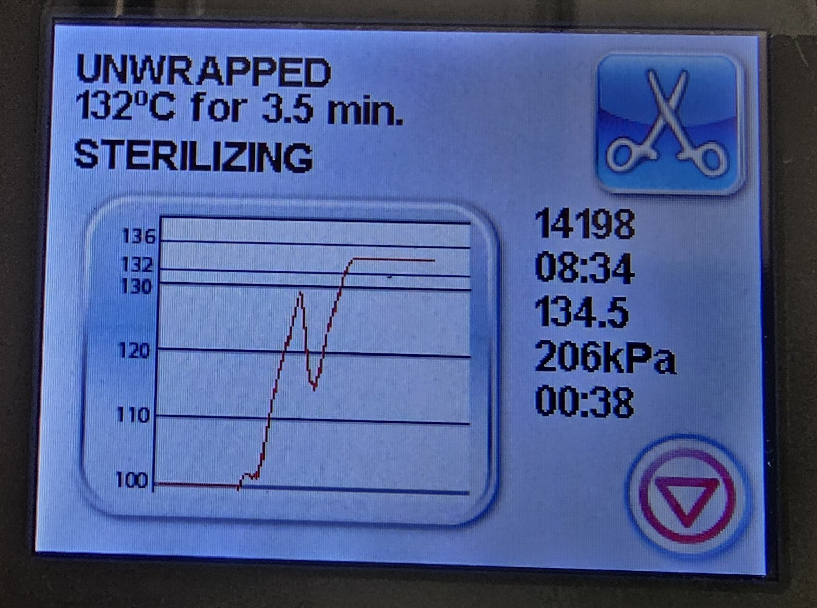 This autoclave was put through an initial functionality test, to prove that it does indeed work. Once it was proven to operate correctly, it was then connected to the internet via it's own built Ethernet connection, and a new feature update was successfully installed. Then this sterilizer was disassembled down to it's bare chassis, cleaned, and reassembled. Preventive maintenance parts were installed, which include, a new Water Pump, Air Valve, Check Valve, Biological Filter and Compressor Air Filter. The Reservoir Tank was cleaned and flushed and a Water Pump Filter were installed. A new Display and Keypad were installed. The sterilizing cassette was also cleaned and a new Cassette Seal was installed. Prior to running test cycles on this sterilizer, the temperature sensors were calibrated. Then this autoclave was tested through all it's preset sterilizing and drying cycles multiple times. To verify that this unit is achieving it's highest maximum required sterilization temperature, it was tested using a Max Register Thermometer and found to exceed 273 F while running a sterilization cycle.