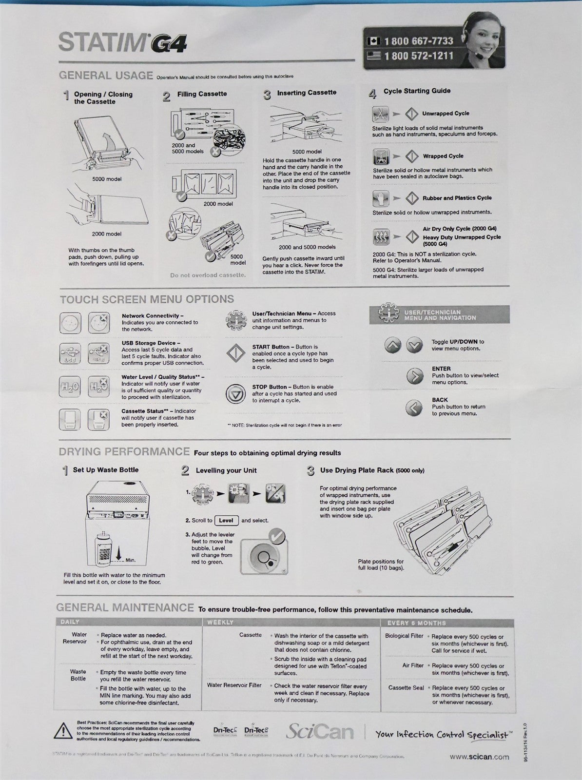 1 - SciCan STATIM 5000 G4 Cassette Autoclave 1 - Sterilizing Cassette w/ Rack 1 - Condenser Waste Bottle 1 - PM KIT 1 - Power Cord 1 - OEM Shipping container