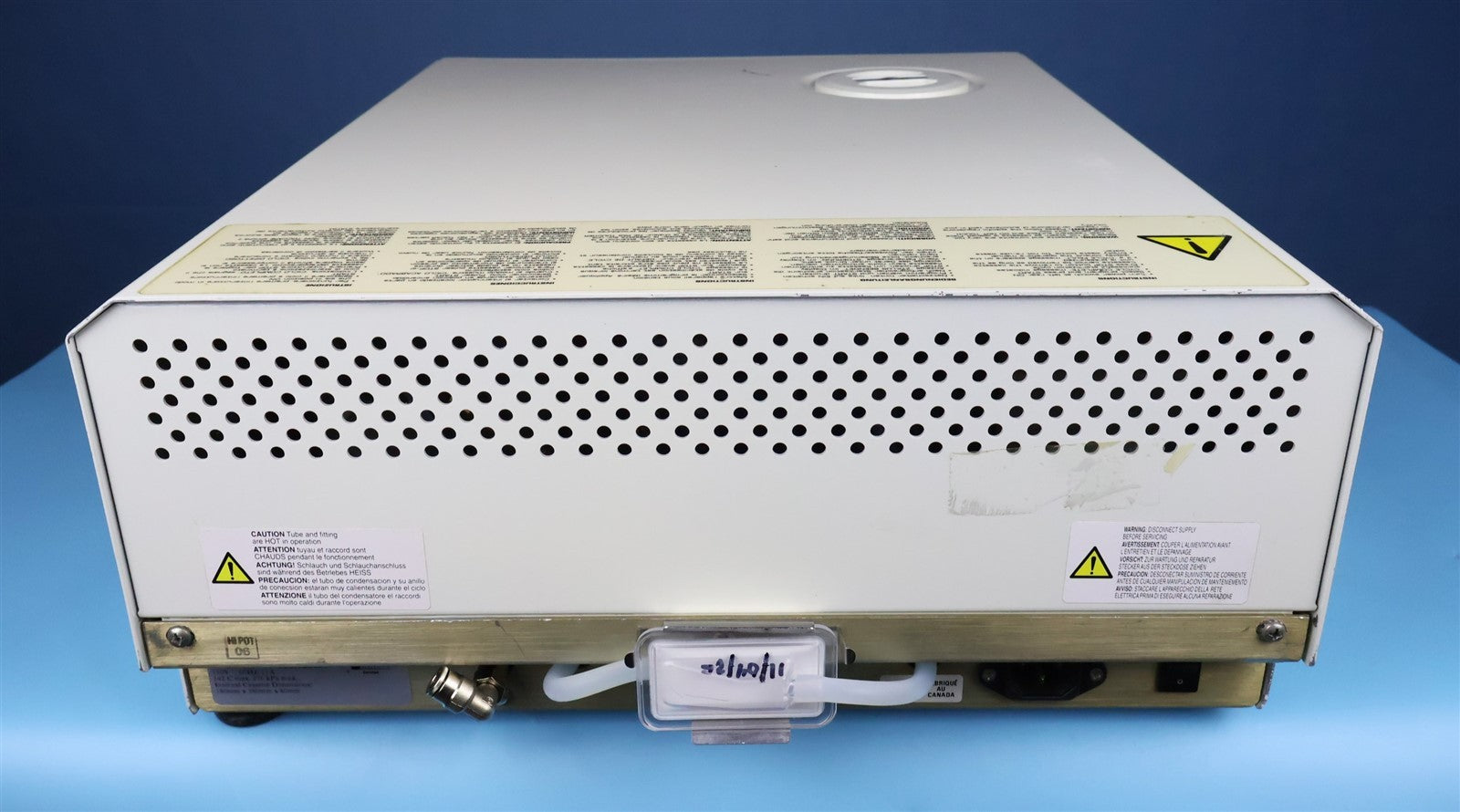 Your purchase will NOT include: This product is pre-owned and may not include the same accessories as a new, unused unit. - other accessories not shown or listed here.This autoclave was put through an initial functionality test, to prove that it does indeed work. Once it was proven to operate correctly, it was disassembled down to it's bare chassis and cleaned up, then reassembled. To insure it continued future operation, preventive maintenance parts were installed, which include, a new Bubble Level, Probe Bracket, Chamber Microswitch, Water Pump, Air Valve, Check Valve, and Biological Filter. The Reservoir Tank was cleaned and flushed and a new Reservoir Cap, Reservoir Filter and Water Pump Filter were installed. The sterilizing cassette was also cleaned and a new Cassette Handle and Cassette Seal was installed. Prior to running test cycles on this sterilizer, the temperature sensors were calibrated. Then this autoclave was tested through all it's preset sterilizing and drying cycles multiple times. To verify that this unit is achieving it's highest maximum required sterilization temperature, it was tested using a Max Register Thermometer and found to exceed 273 F while running a sterilization cycles.