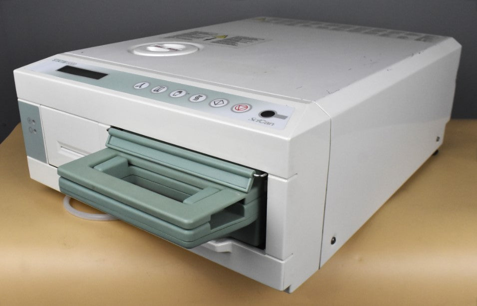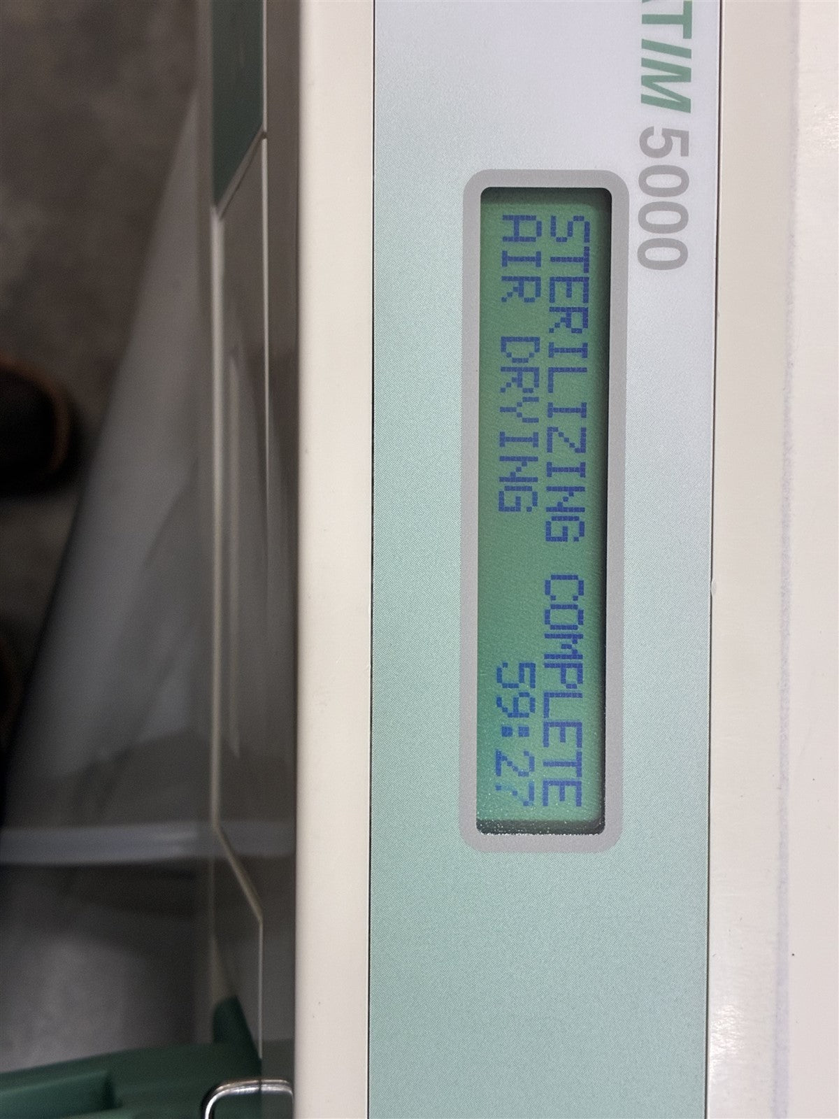 This autoclave was put through an initial functionality test, to prove that it does indeed work. Once it was proven to operate correctly, it was disassembled down to it's bare chassis and cleaned up, then reassembled. To insure it continued future operation, preventive maintenance parts were installed, which include, a new Water Pump, Air Valve, Check Valve, Safety Valve, Compressor Air Filter and Biological Filter. The Reservoir Tank was cleaned and flushed and a new Reservoir Cap, Reservoir Filter and Water Pump and Drain Kit Upgrade was installed. The sterilizing cassette was also cleaned and a new Cassette Seal was installed. Prior to running test cycles on this sterilizer, the temperature sensors were calibrated. Then this autoclave was tested through all it's preset sterilizing and drying cycles multiple times. To verify that this unit is achieving it's highest maximum required sterilization temperature, it was tested using a Max Register Thermometer and found to exceed 273 F while running a sterilization cycle.