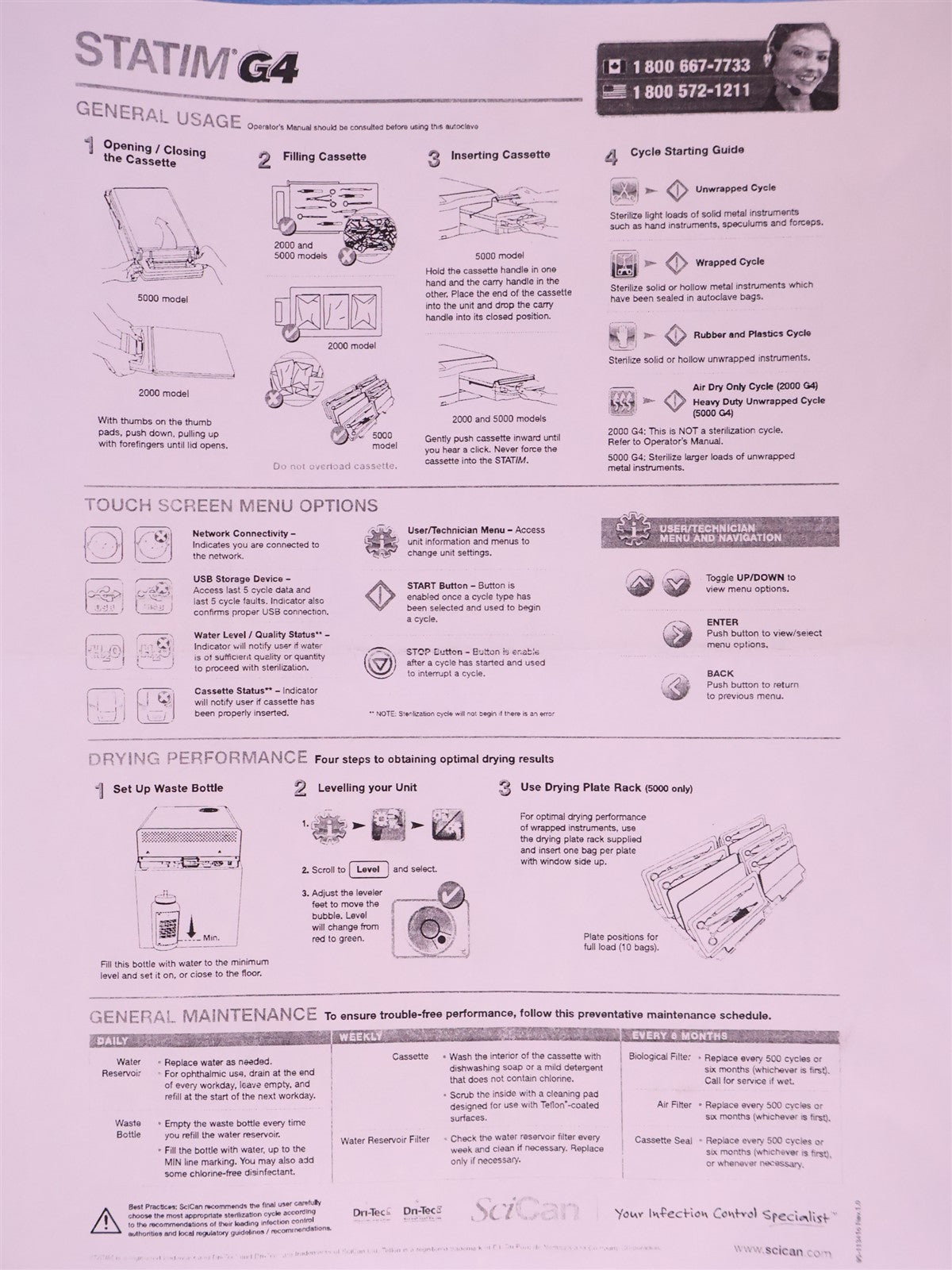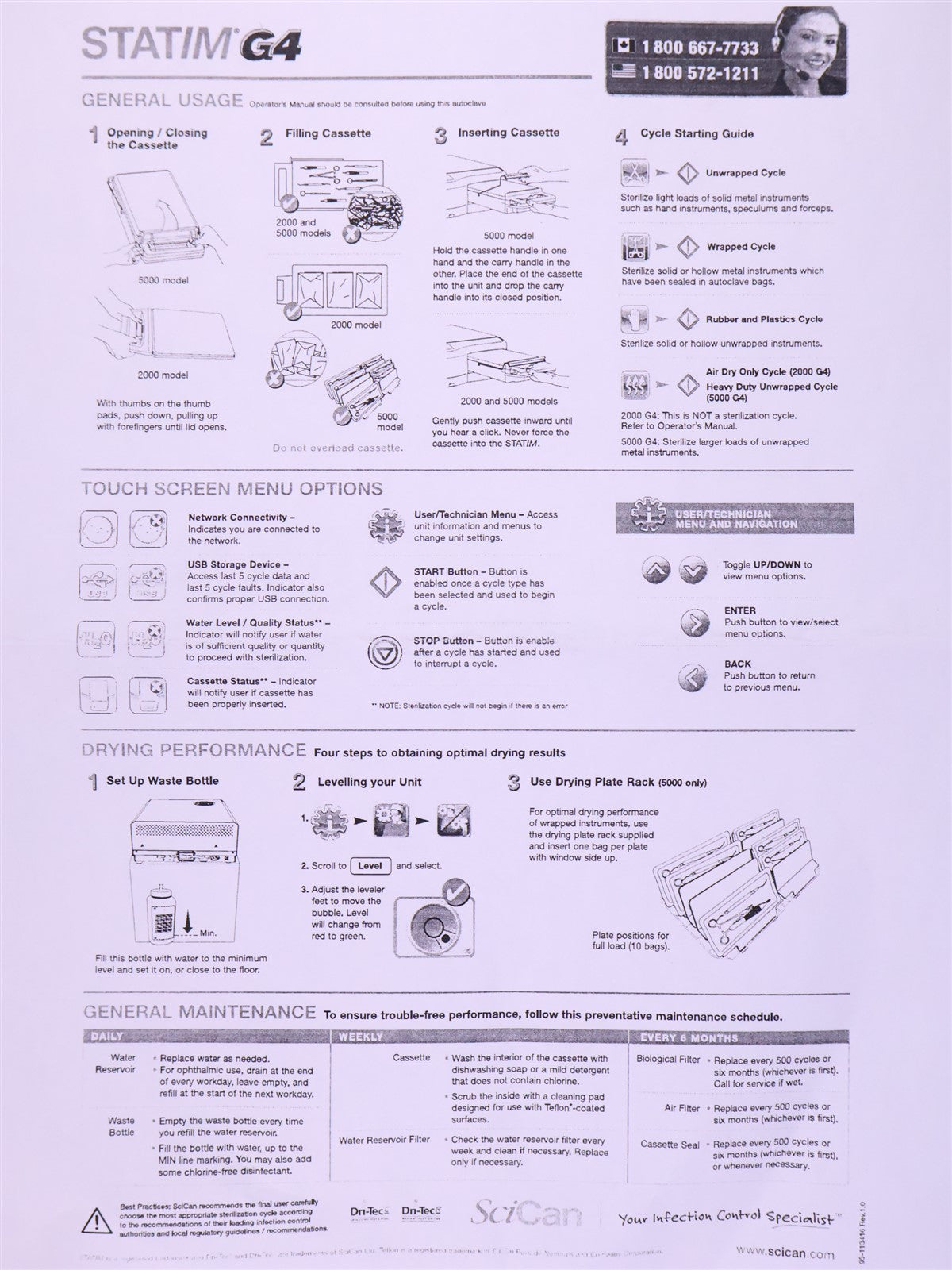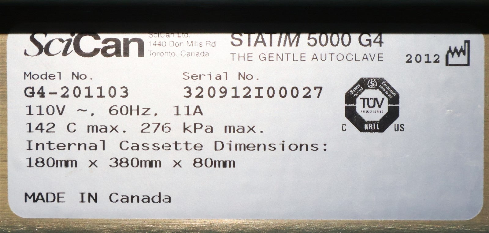 1 - SciCan STATIM 5000 G4 Cassette Autoclave 1 - Sterilizing Cassette w/ Rack 1 - Condenser Waste Bottle 1 - Power Cord