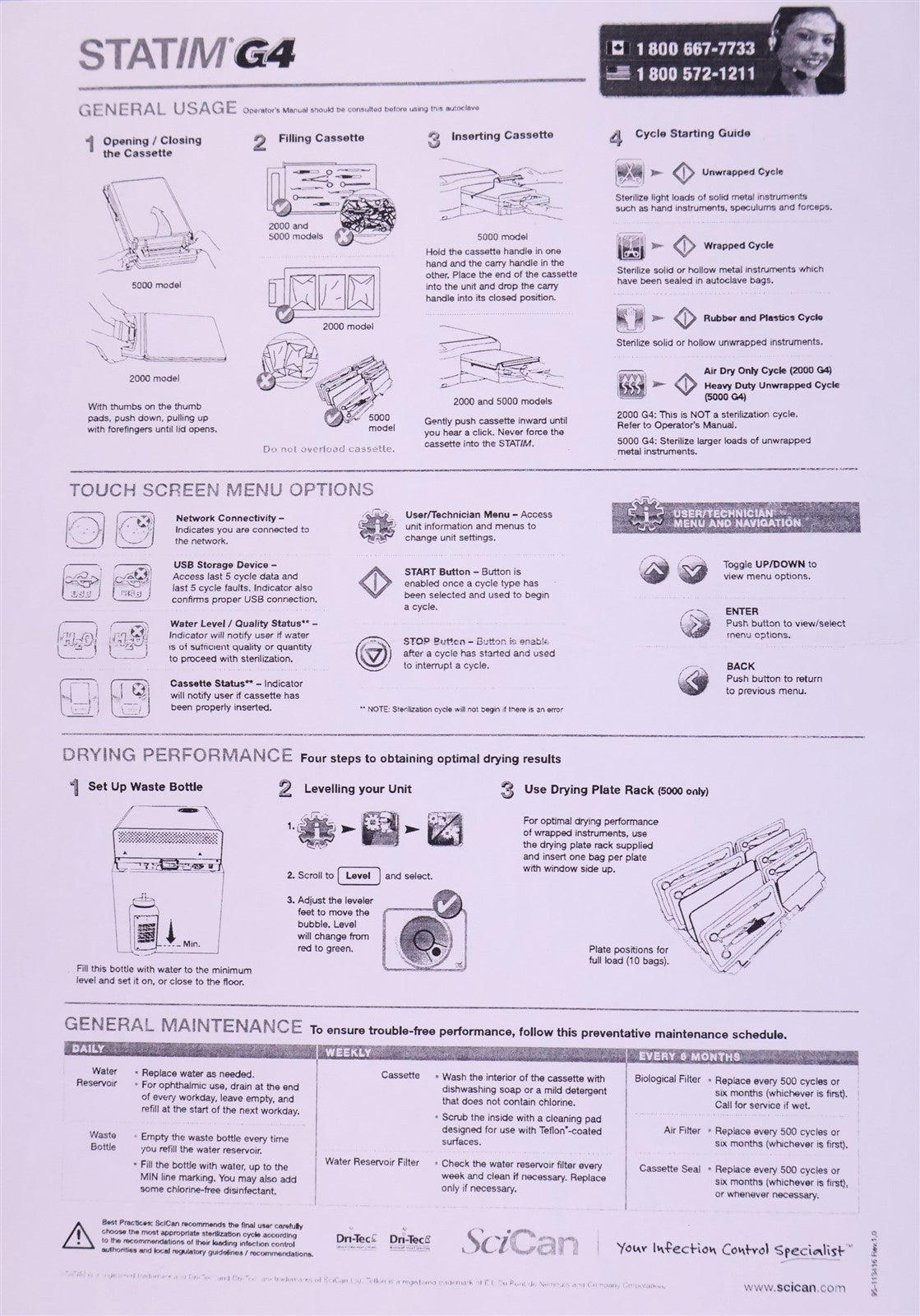 1 - SciCan STATIM 5000 G4 Cassette Autoclave 1 - Sterilizing Cassette w/ Rack 1 - Condenser Waste Bottle 1 - Power Cord