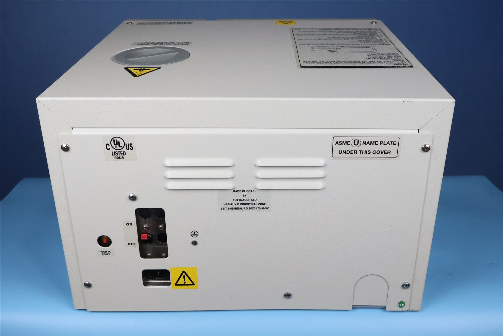 Your purchase will NOT include: This product is pre-owned and may not include the same accessories as a new, unused unit. - other accessories not shown or listed here.Prior to testing this autoclave, the major components were inspected and tested and found to be functioning normally. Then the Reservoir Tank was cleaned and flushed and a new Safety Valve and Air Jet Valve were installed. Cleaned the sterilizing chamber and installed a new Door Gasket and Power Switch. Cleaned the sterilizing trays and rack. To test this autoclave, it was first connected to a 120 volt power source, distilled water was added, it was then properly levelled as per it's chamber size requirement and then testing began. This sterilizer was run through cycles of 270 F for 10 minutes and 250 for 30 minutes several times. To verify that this autoclave is achieving it's maximum required sterilizing temperature during a cycle, it was temperature tested with the use of a Max Register Thermometer, and found to exceed 270 F during a sterilization cycle.