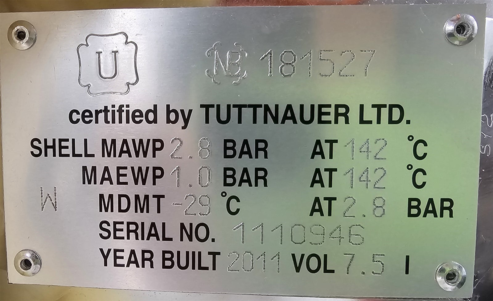 This autoclave is a 2011 model with no evidence of actual usage. The serial number sticker is missing, so model year and serial number identification was taken from ID plate on the back of the chamber. Prior to testing this autoclave, the major components were inspected and tested and found to be functioning normally. To test this autoclave, it was first connected to a 120 volt power source, distilled water was added, it was then properly levelled as per it's chamber size requirement and then testing began. This sterilizer was run through cycles of 270 F for 10 minutes and 250 for 30 minutes several times. To verify that this autoclave is achieving it's maximum required sterilizing temperature during a cycle, it was temperature tested with the use of a Max Register Thermometer, and found to exceed 270 F during a sterilization cycle.