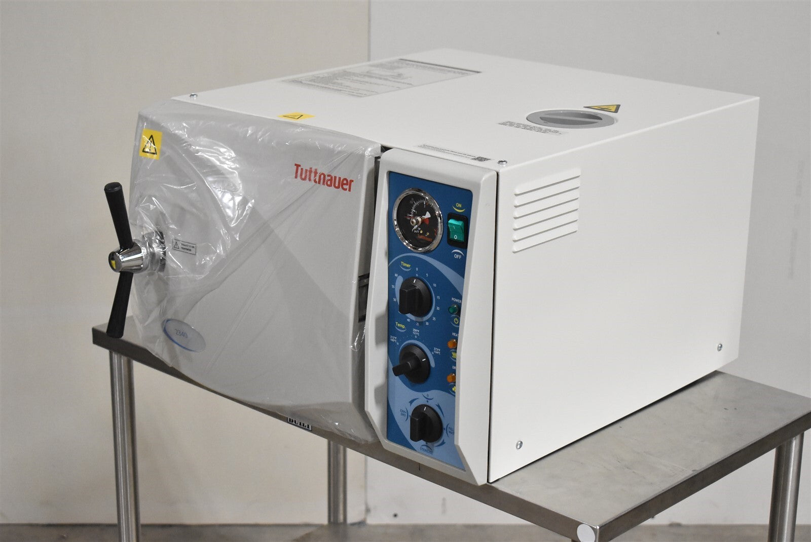 Tuttnauer 2340M, 120v Power Cable, Drain Tube, Autoclave Log Book, Manuals, Chamber Bright Cleaning Tabs, 1 Rack, 3 Trays, Tray Holder
