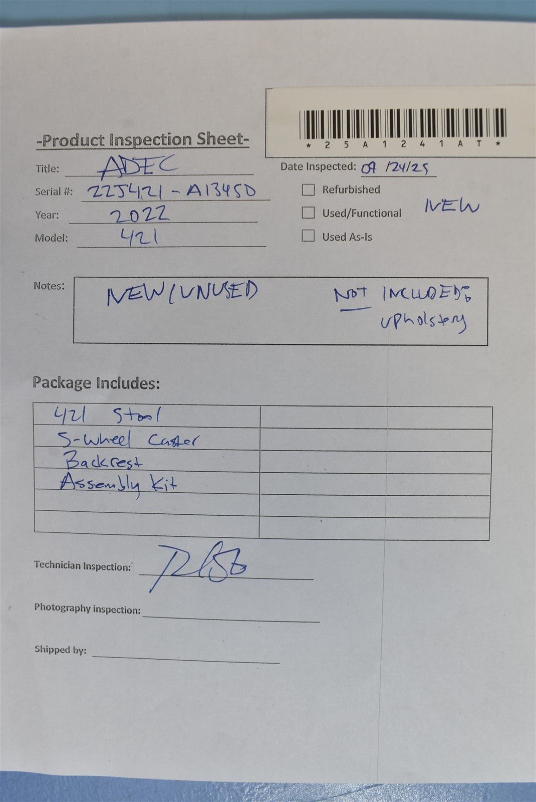 421 Stool, 5-Wheel Caster, Backrest, Assembly Kit