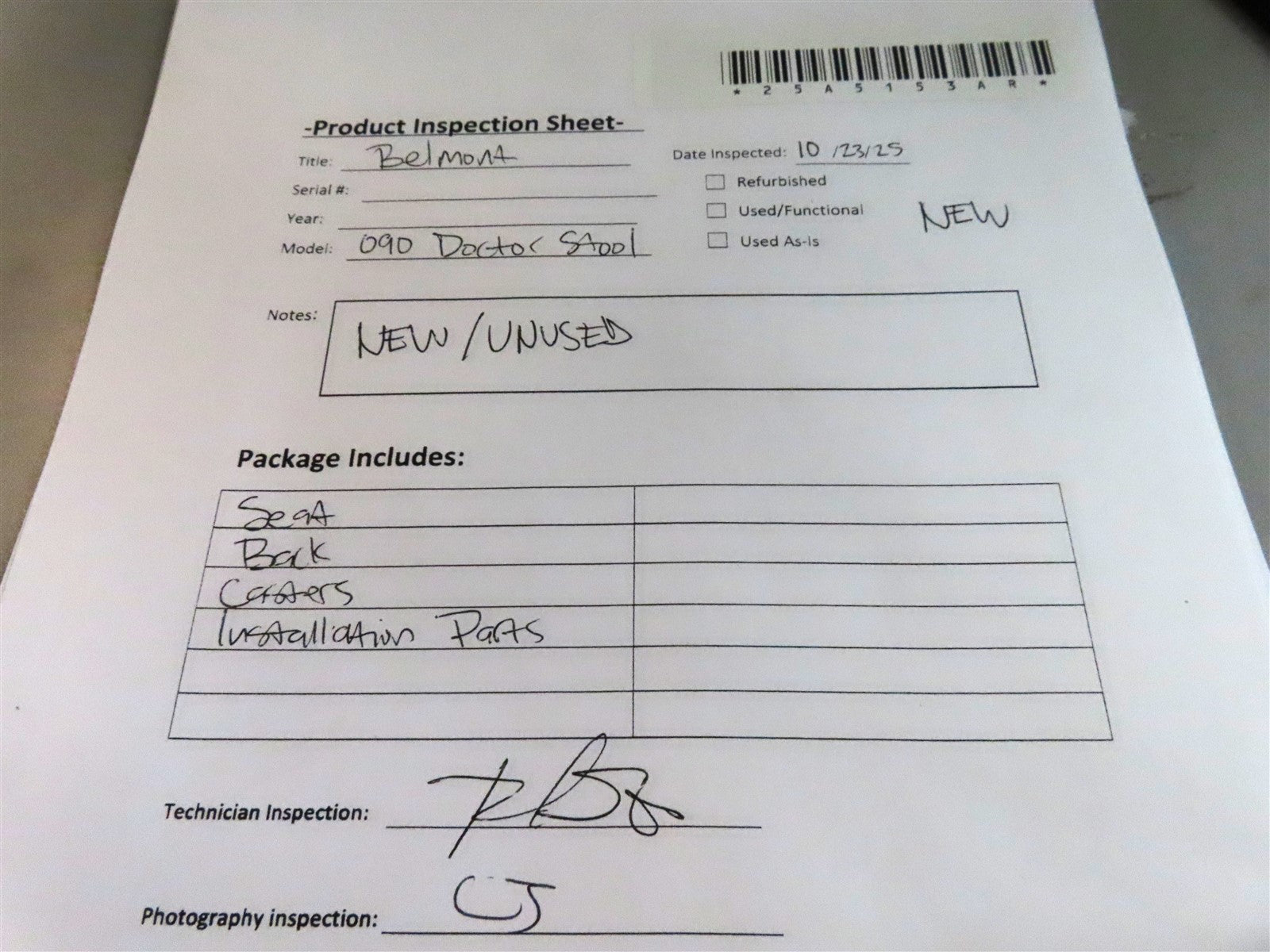 Visually inspected unit for any damage and any missing parts and/or accessories. This unit is new/unused.