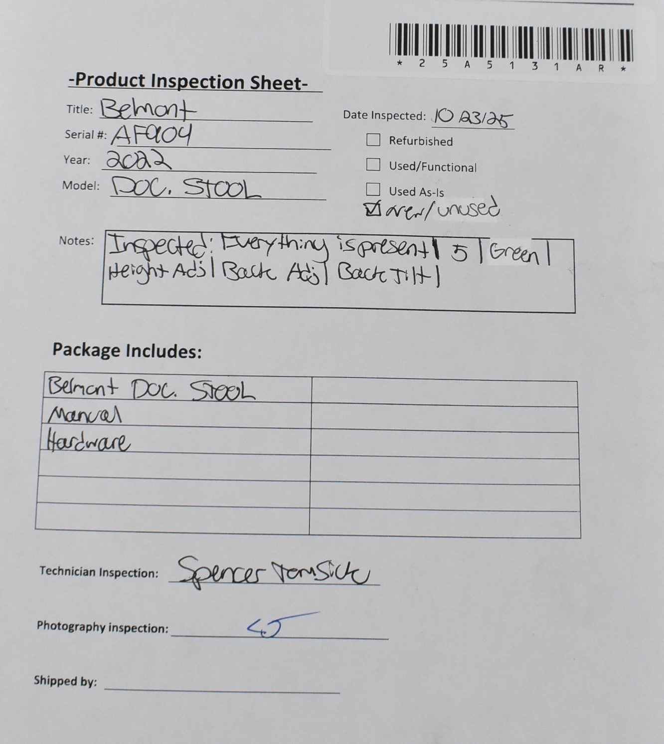 Belmont Doc. Stool, Manual, Hardware