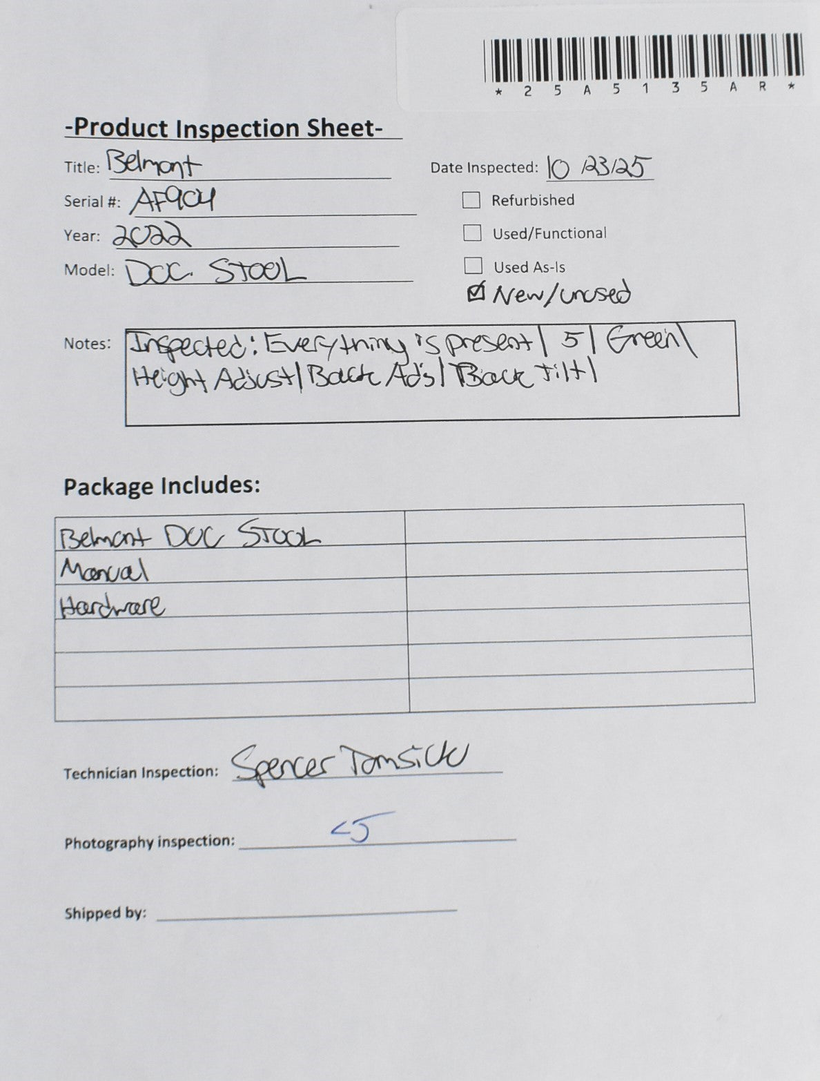 Belmont DOC Stool, Hardware, Manual