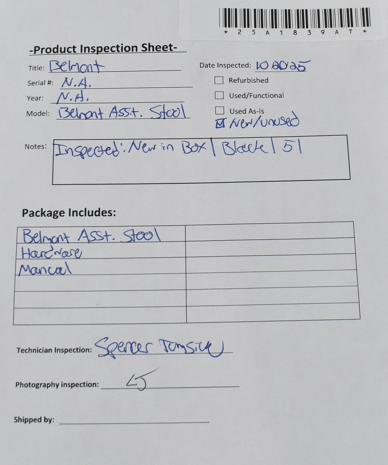 - Model: Belmont Asst. Stool