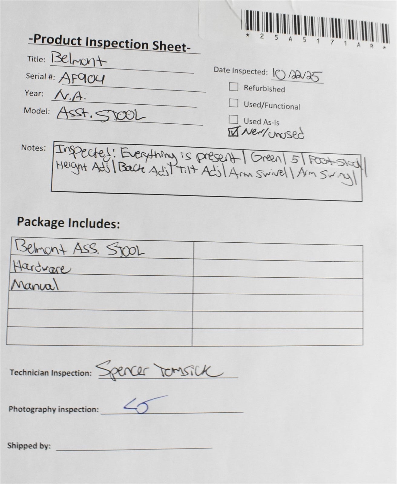 Belmont Asst. Stool, Hardware, Manual