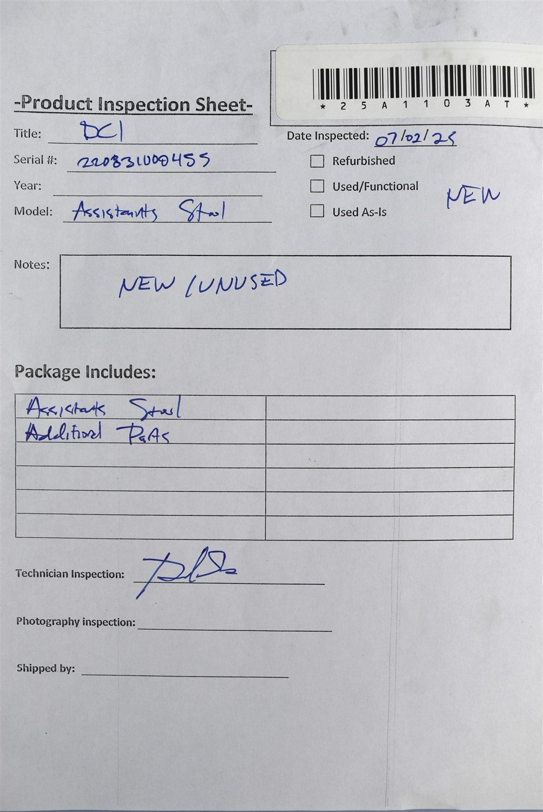Visually inspected the unit for any damaged or missing parts and accessories. This unit is new/unused