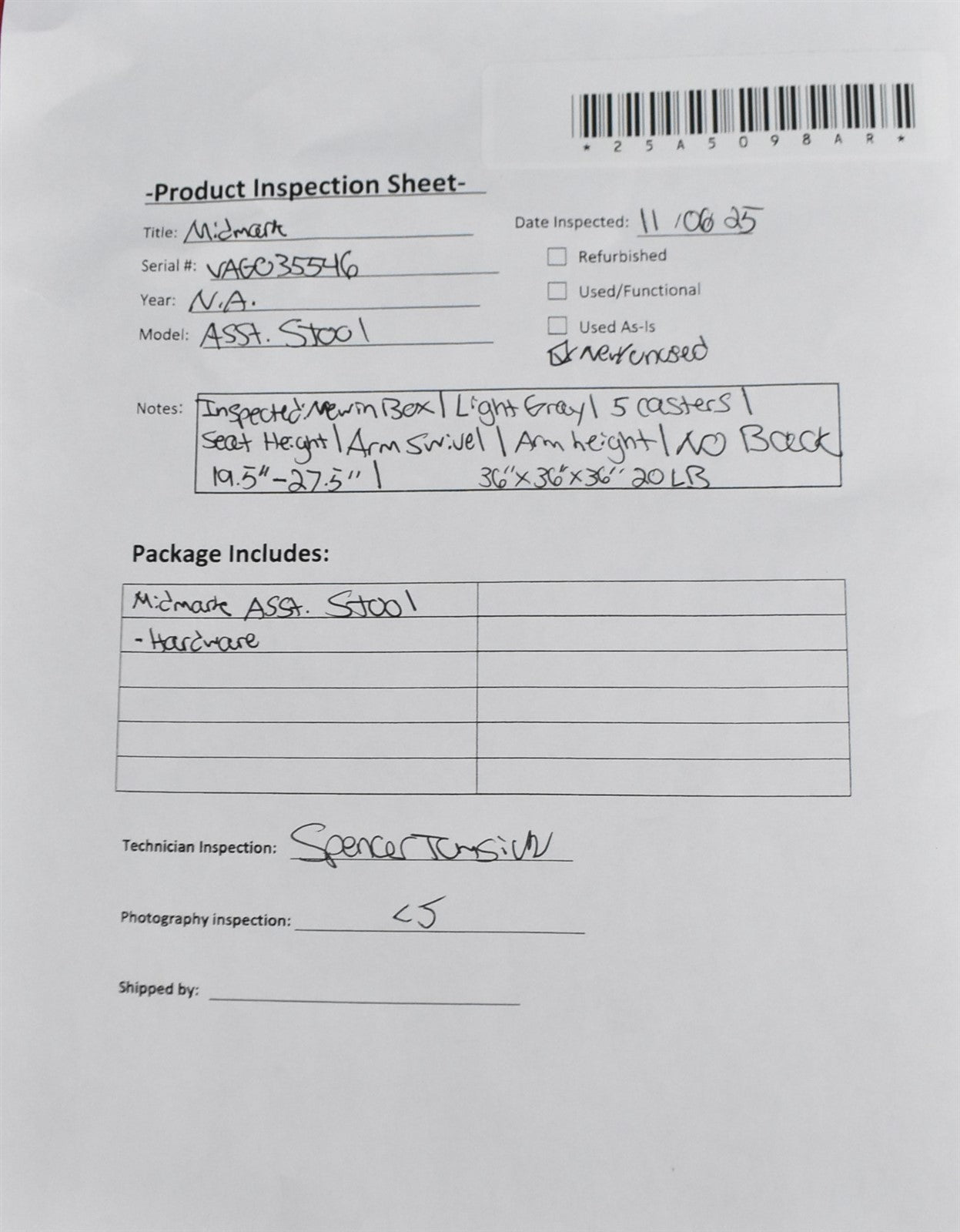 - Model: Asst. Stool