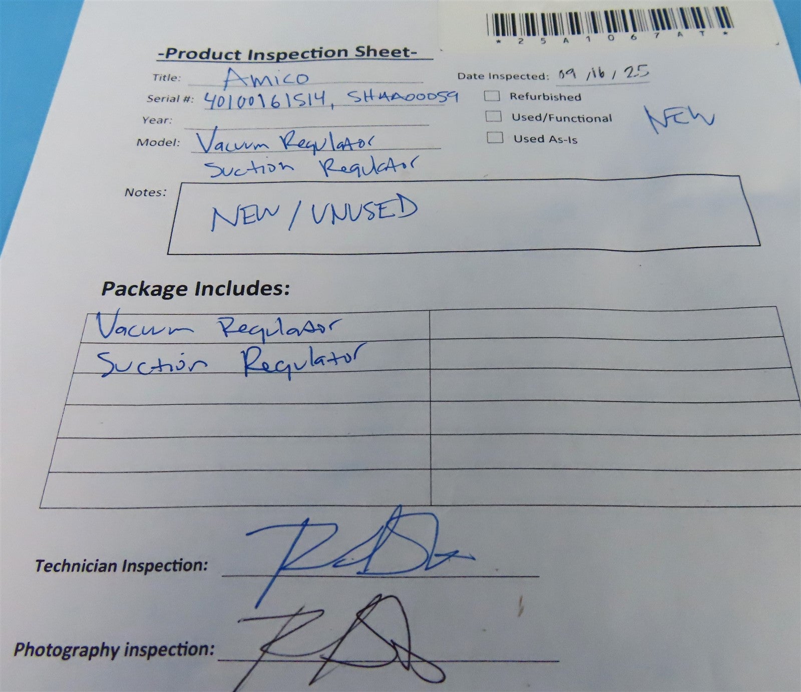 09/16/25 Visually inspected the unit for any damages or missing parts and accessories. -RS