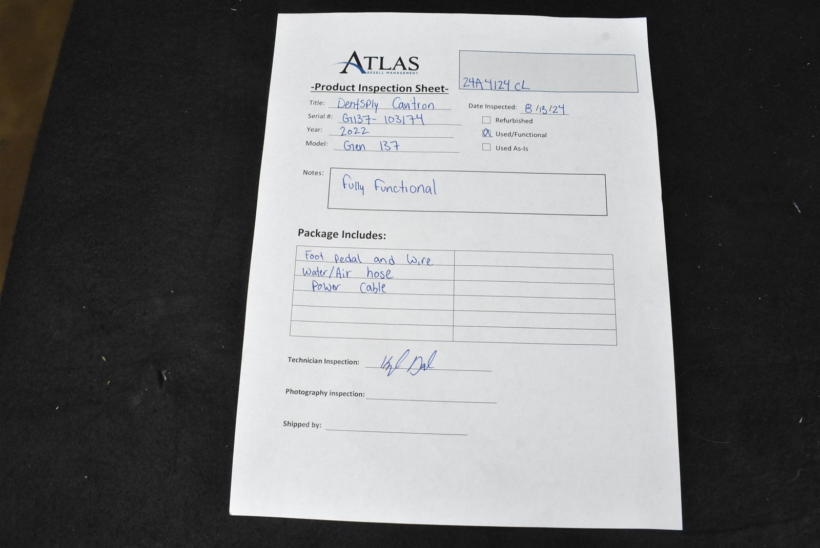 Your purchase will NOT include: HANDPIECE PROPHY TIP (AUTOCLAVABLE)This product is pre-owned and may not include the same accessories as a new, unused unit. - other accessories not shown or listed here.Attached unit to all required attachments for function. Including water. compressed air, foot pedal, and 120V power source. Unit does not include prophy tip, used one Atlas has in house. Proceeded to power unit on and engage foot pedal. Upon engaging foot pedal, unit responded dispensing water out tip in a adequate mist. Knob to adjust prophy settings as well as water rotates with no issues and does not over rotate. Handpiece water adjustment also controls water by increasing/decreasing as intended. Unit is in good cosmetic condition with MINOR wear and tear from prior use, as well as MINOR scuffs from prior use. Unit includes everything required for function but DOES NOT include prophy handpiece TIP!. UNIT FULLY FUNCTIONAL