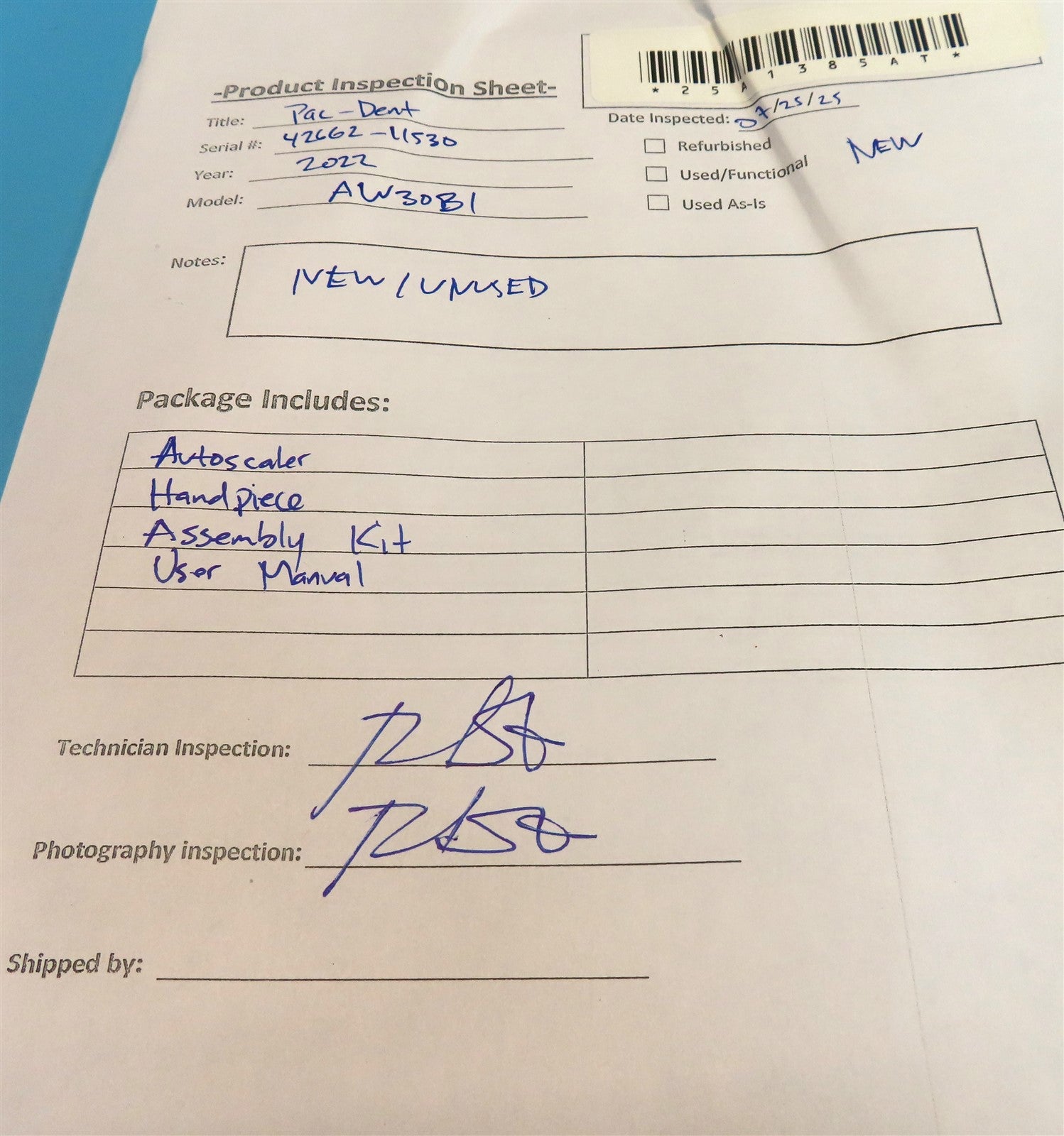 Visually inspected the unit for any damages or missing parts and accessories. This unit is new/unused