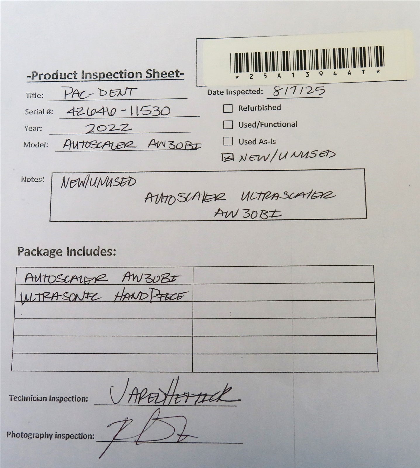 Your purchase will NOT include: water hose, air hose - other accessories not shown or listed here.NEW UNUSED • Integrated Convenience Designed for seamless installation into your dental delivery unit, eliminating the need for separate tabletop units and keeping your operatory uncluttered. • Powerful Ultrasonic Performance Delivers consistent, high-frequency scaling power for effective removal of plaque, calculus, and stains while remaining gentle on tooth surfaces. • Multiple Scaling Modes Features adjustable power settings for scaling, perio, and endo applications—offering flexibility for a wide range of clinical procedures. • Autoclavable Handpiece Durable, detachable handpiece can be fully autoclaved for optimal infection control and long-term reliability. • Wide Tip Compatibility Accepts standard EMS-style tips, giving you access to a variety of tip designs for different clinical needs. • Quiet, Smooth Operation Engineered for reduced noise and vibration, ensuring patient comfort during treatments. • Durable Construction Built with high-quality materials for years of dependable performance, even in high-volume practices.