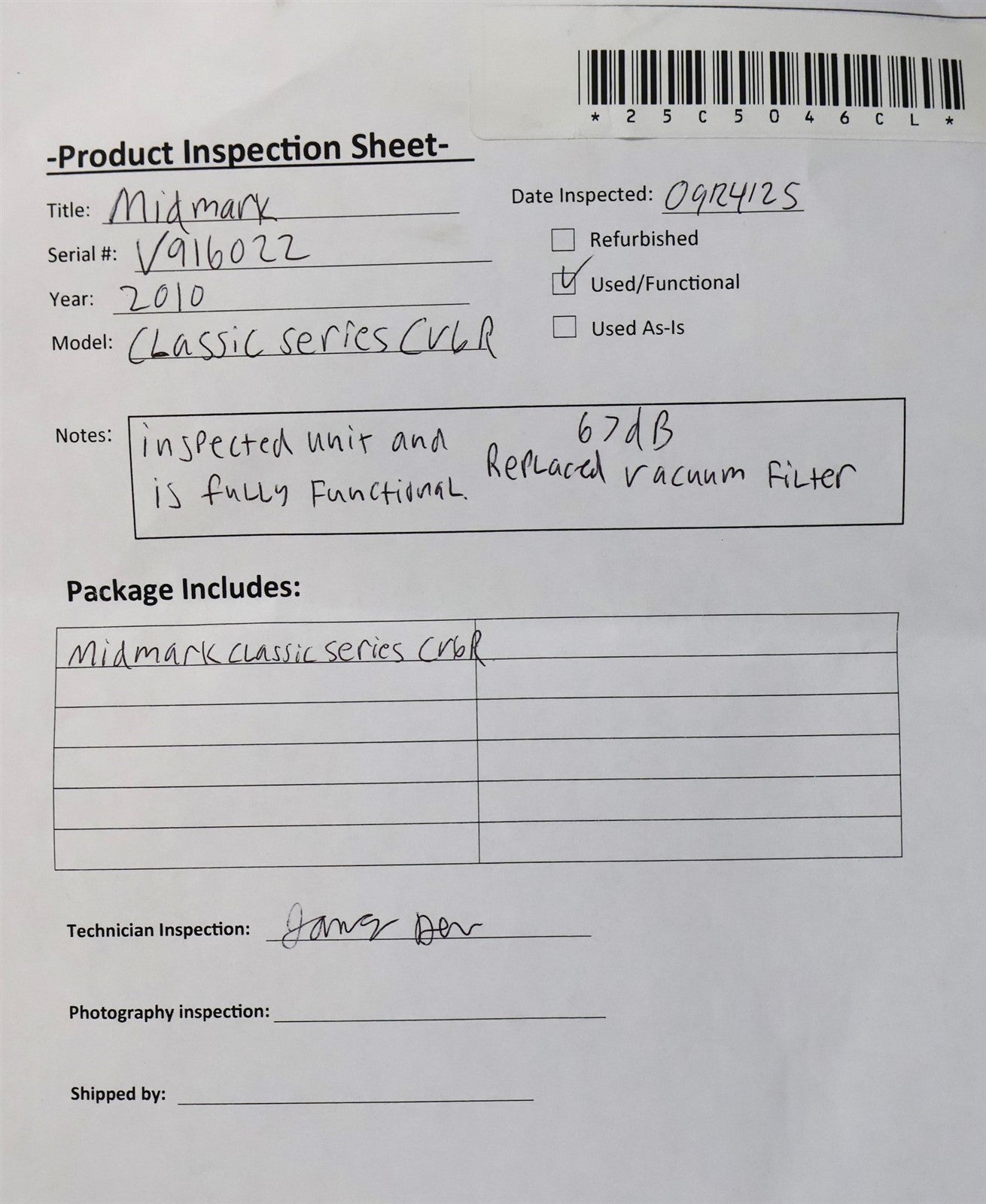 • Serial Number: V916022