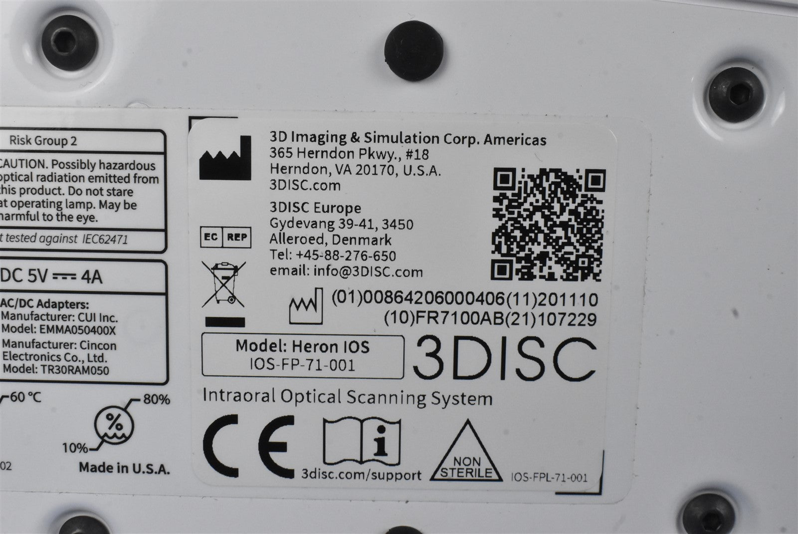 3DISC Heron IOS, AC Adapter With Plug Modules, intraoral scanner tips