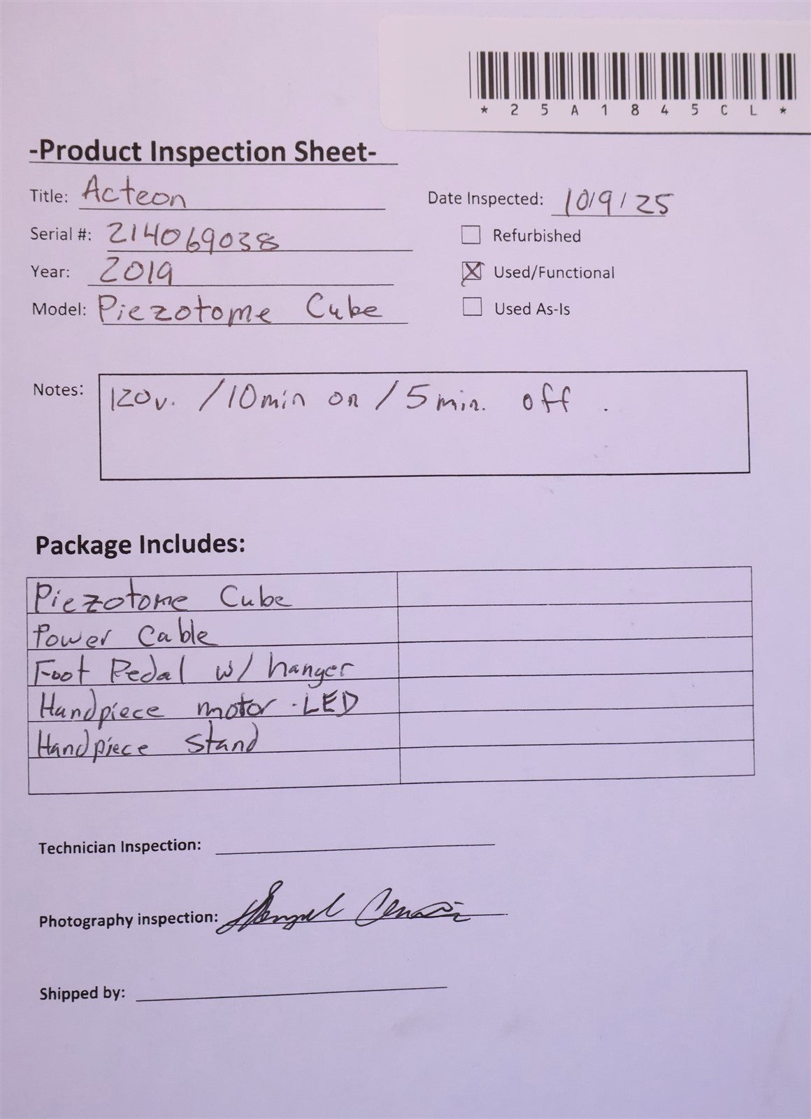 Your purchase will NOT include: Irrigation LineThis product is pre-owned and may not include the same accessories as a new, unused unit. - other accessories not shown or listed here.The unit was successfully powered on and underwent a comprehensive functionality check. All control buttons responded appropriately, and both the foot pedal and handpiece motor were tested and confirmed to be operating within expected parameters. The system is functioning optimally.