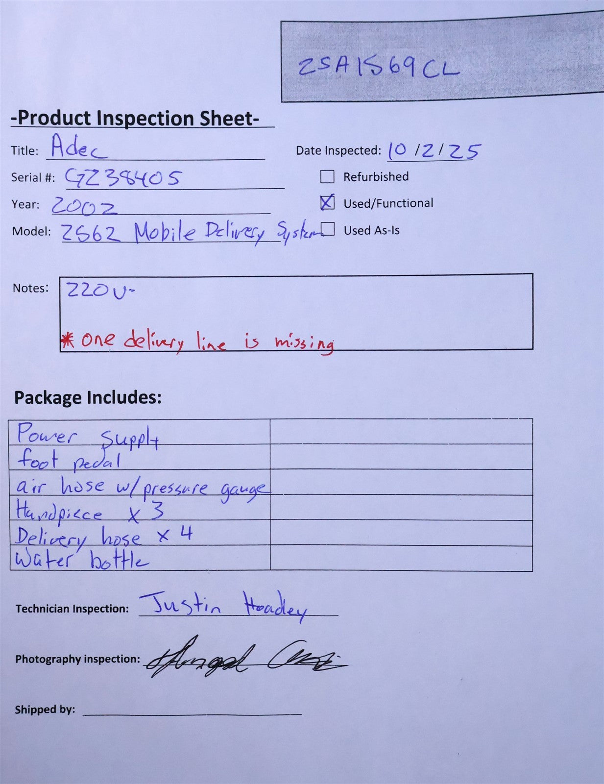 Your purchase will NOT include:Handpiece HeadsThis product is pre-owned and may not include the same accessories as a new, unused unit. - other accessories not shown or listed here.The power supply was verified to be operational, and the foot pedal was tested for responsiveness. All system components are functioning as expected.
