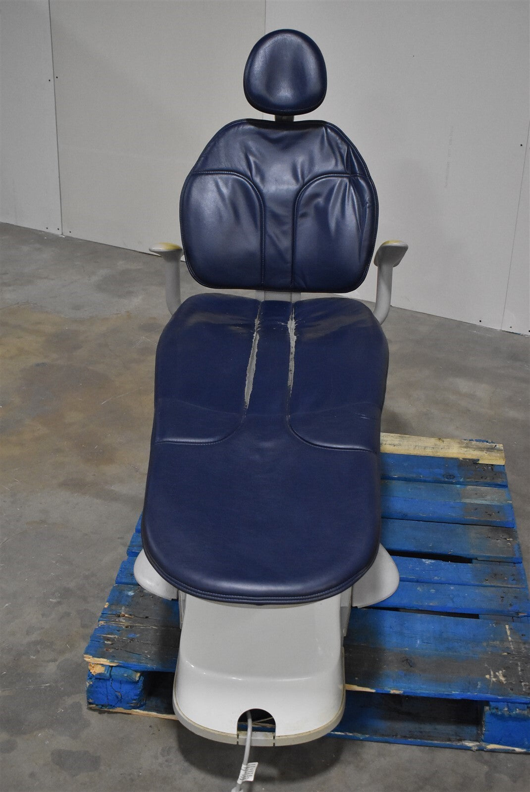 Visually inspected the unit for any damaged or missing parts and accessories. This unit does not come with a foot pedal. Minor wear and tear on the upholstery found on the footrest of the chair. Function tested the unit and found it to be fully functional with good cosmetic condition.