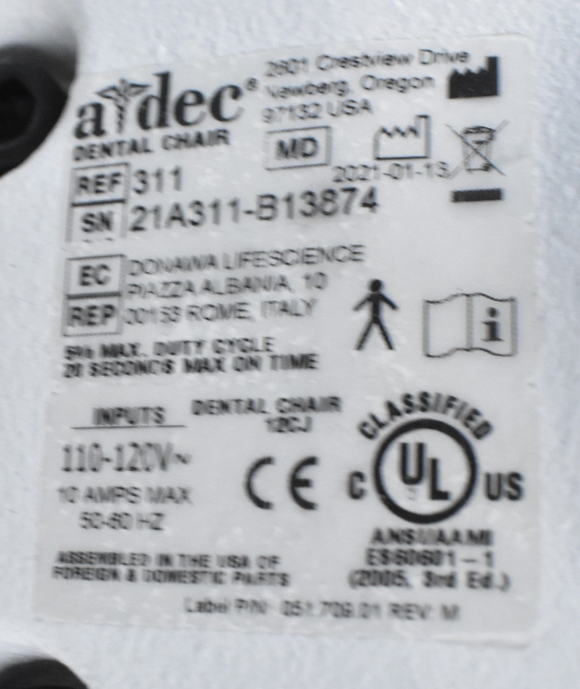 - Exam Chair Model: 311 (Gray) with 541 12 O'Clock Rear Delivery, 375L Exam Light