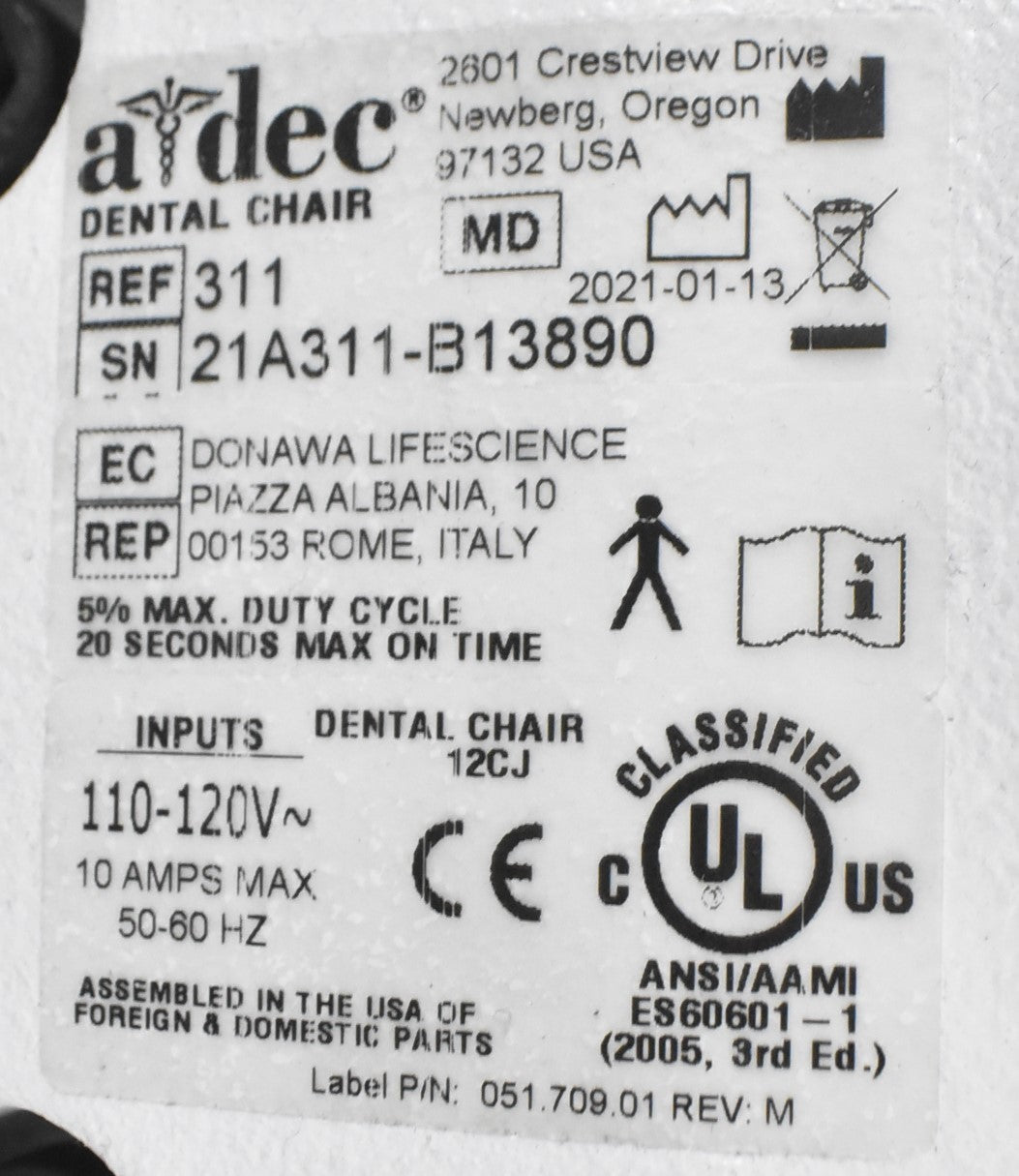 - Exam Chair Model: 311 (Gray) with 541 12 O'Clock Rear Delivery, 375L Exam Light