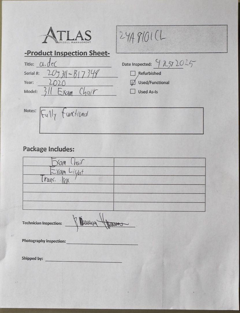 - Exam Chair Serial Number: 20J311-B17348