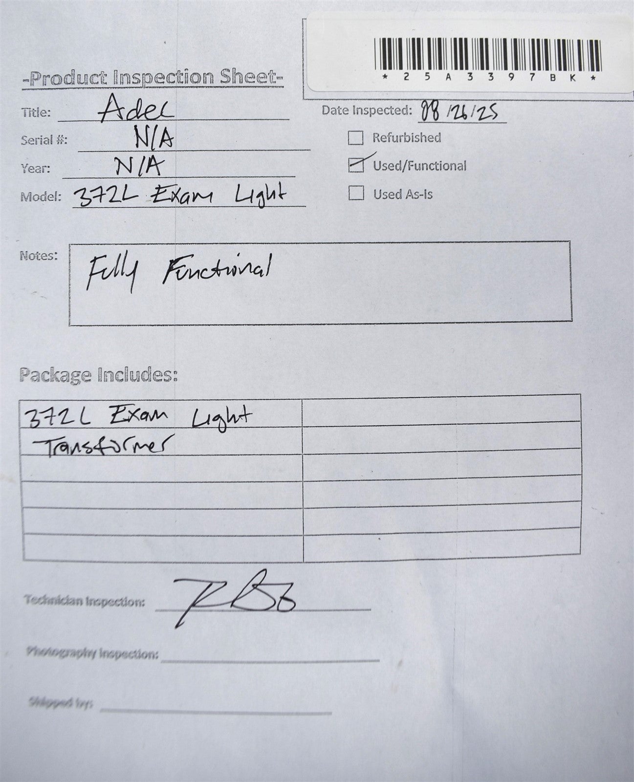 08/26/25 Exam Light has been inspected for missing components and damages, unit is fully functional but does not include harness