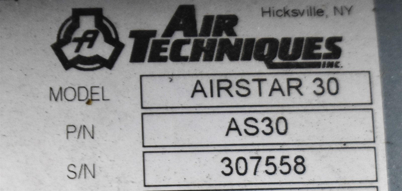 The Air Techniques AirStar 30; Dental Compressor was inspected for performance, safety and structural integrity. The unit powers on properly, builds pressure efficiently, and maintains stable output without fluctuations. Air filters and moisture traps are clean and in good condition. Hoses and fittings are secure with no visible leaks. Noise levels are within acceptable range, and the motor operates smoothly without overheating. The exterior casing is intact with no dents or damage. The unit has been cleaned and disinfected. Inspection Results: Passed- Ready for Resale