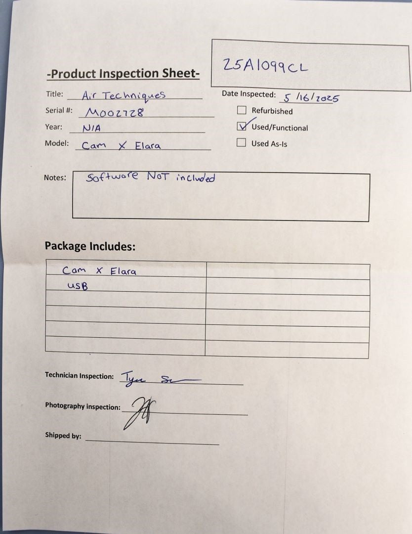 Your purchase will NOT include: SoftwareThis product is pre-owned and may not include the same accessories as a new, unused unit. - other accessories not shown or listed here.I set up this camera with out tester laptop. I took photos of the images that this camera produced and they can be seen in the pictures. This camera is fully functional and is in pretty good cosmetic condition.