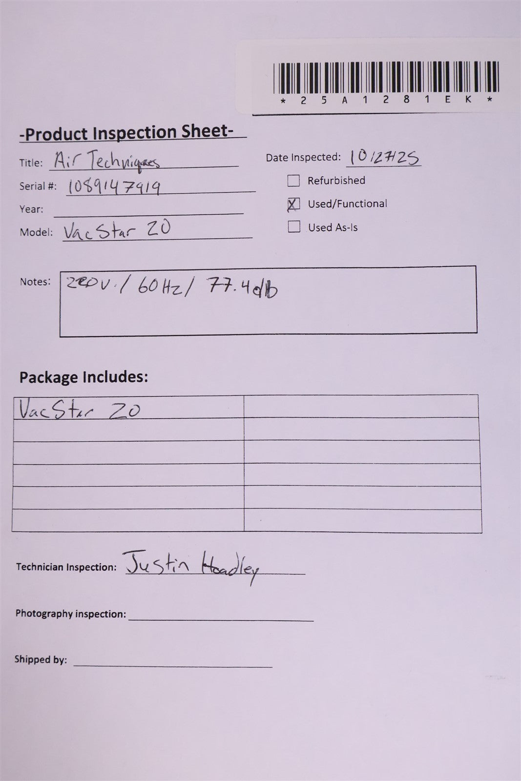 Air Techniques VacStar 20 Dental Vacuum Pump Operatory Suction System