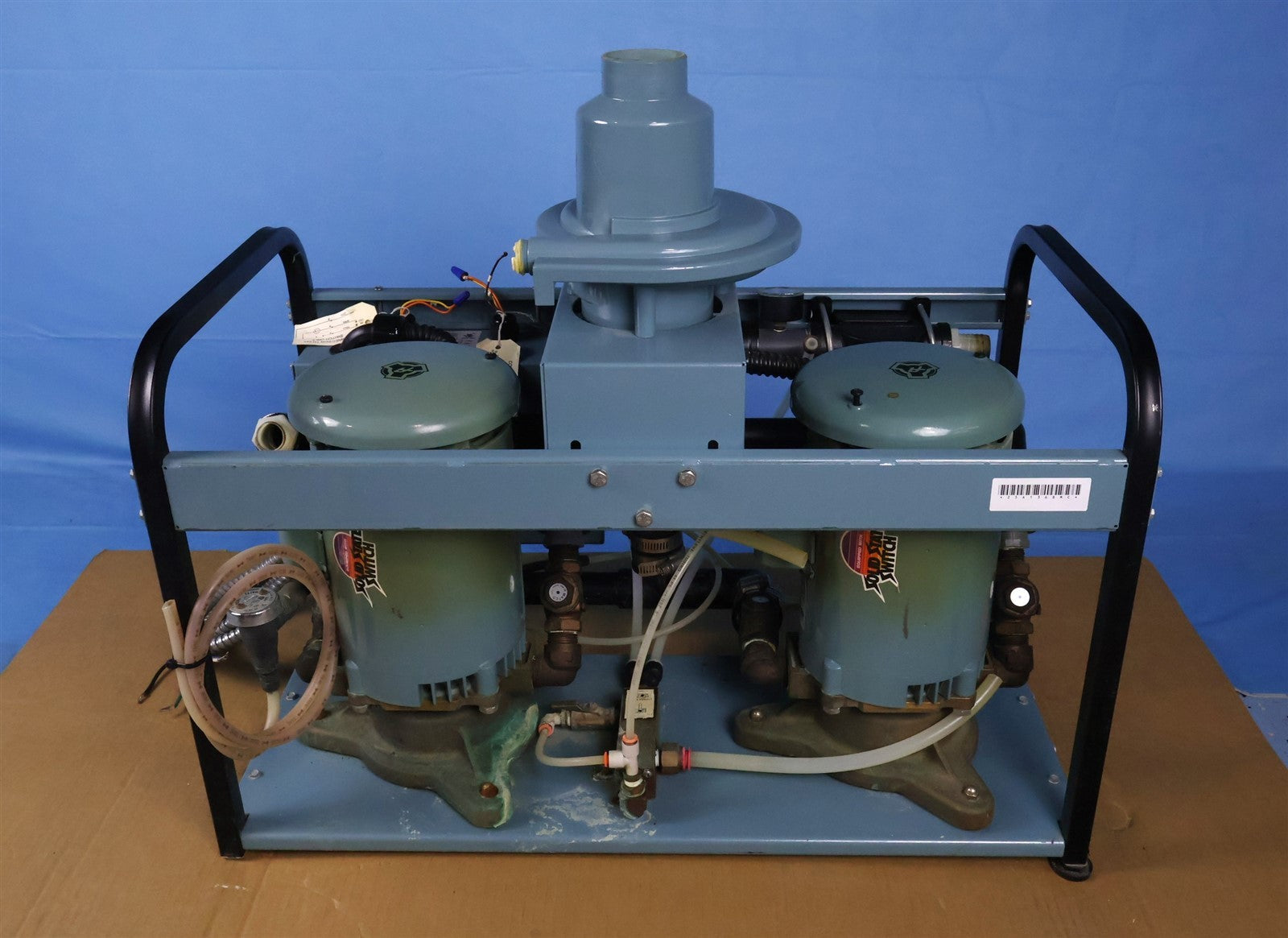 Prior to function testing this Air Techniques VacStar 50H, it was visually inspected for any damage or missing components that would interfere with units complete functionality. Unit is complete and free of significant damage. Including water recycler as well and tubing to switch from direct outlet to water recycler. Proceeded to hardwire unit to required power source, and powered each motor head on individually to ensure function. Both sound smooth and free of obstruction, reading at 68.4 dBs. Suction is adequate. FINAL INSPECTION STATUS= PASSED. FULLY FUNCTIONAL