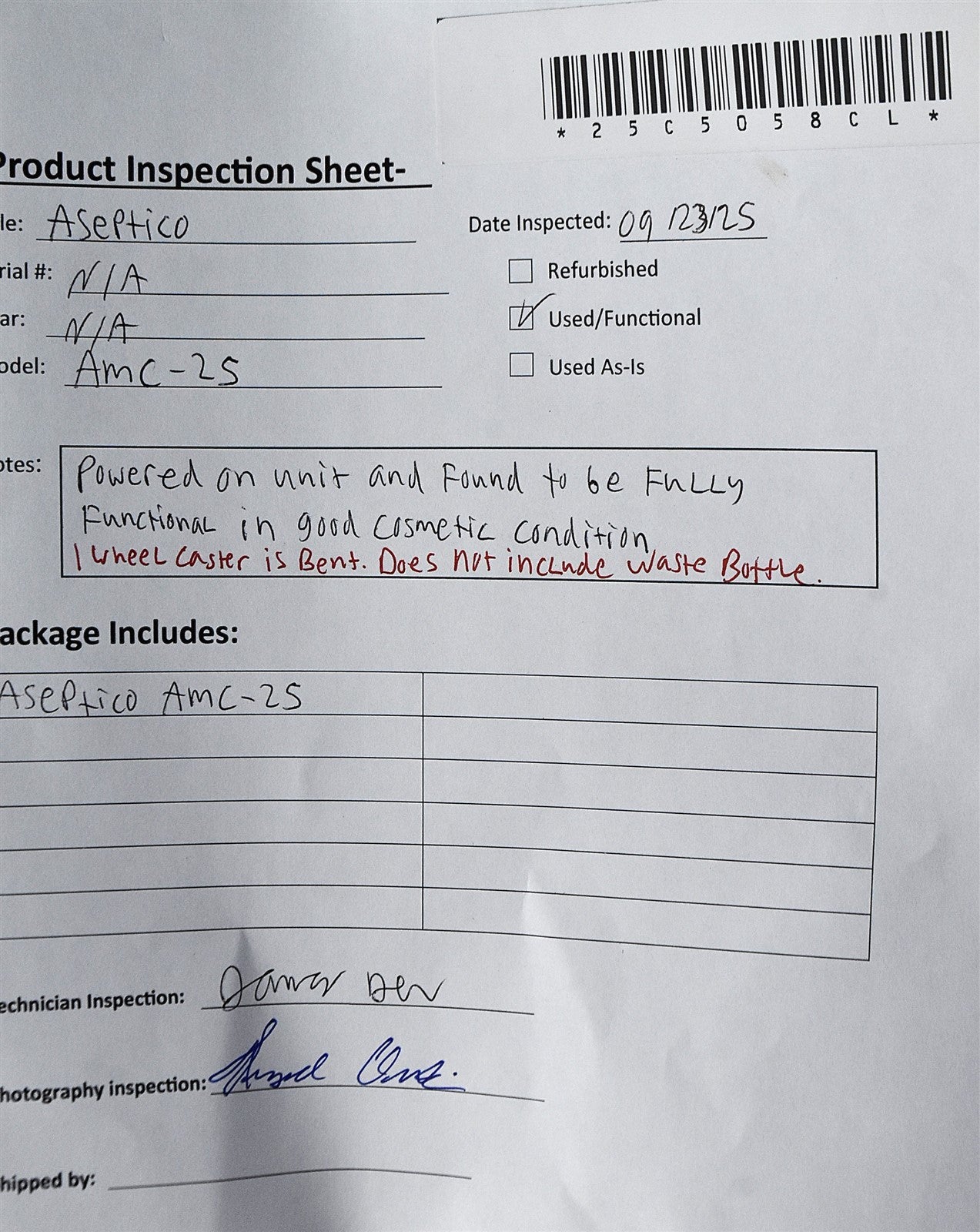 Your purchase will NOT include:Waste Bottle.This product is pre-owned and may not include the same accessories as a new, unused unit. - other accessories not shown or listed here.visually inspected unit for any damaged or missing parts and accessories. Function tested unit and found it to be fully functional with good cosmetic condition.