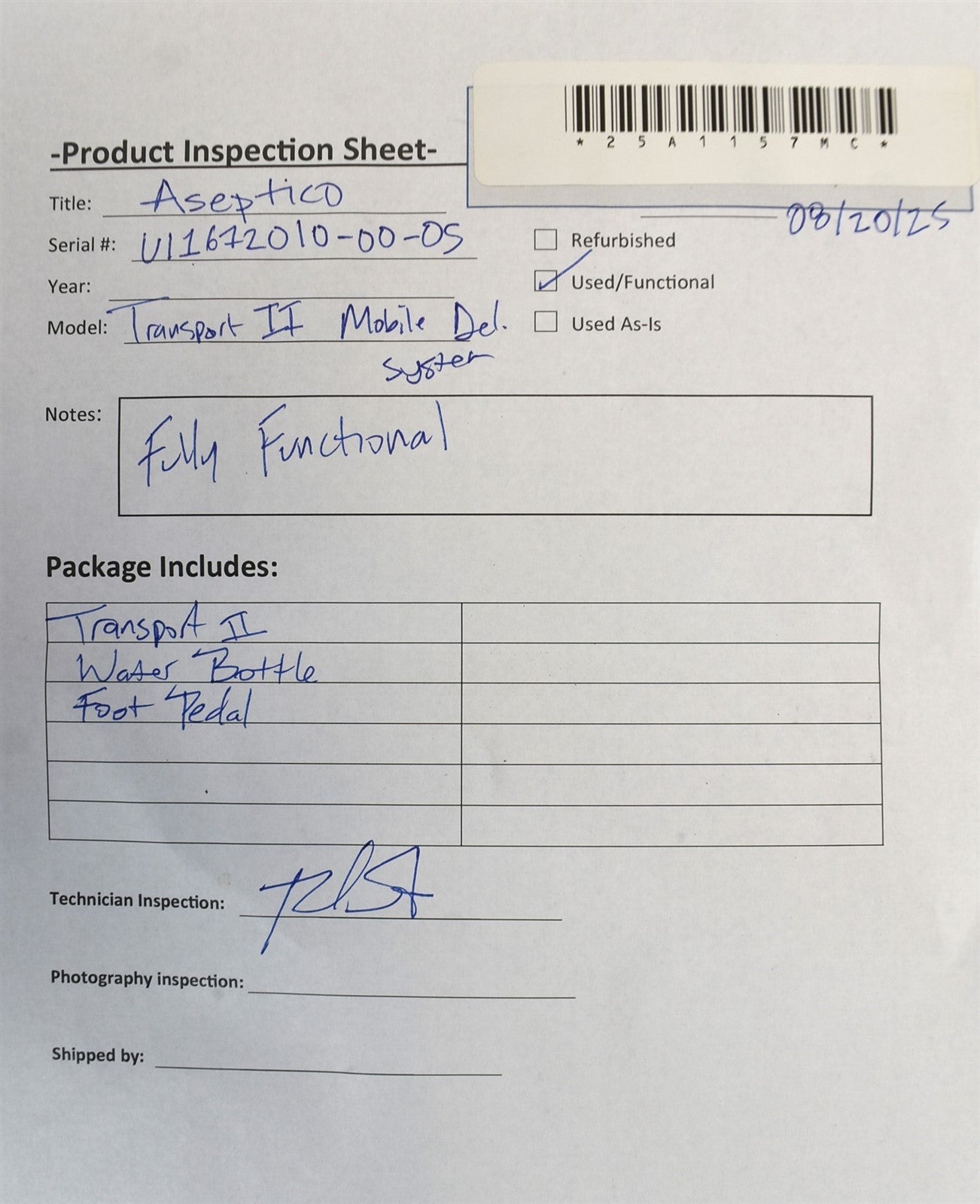 Transport II Mobile Delivery System, Water Bottle, Foot Pedal