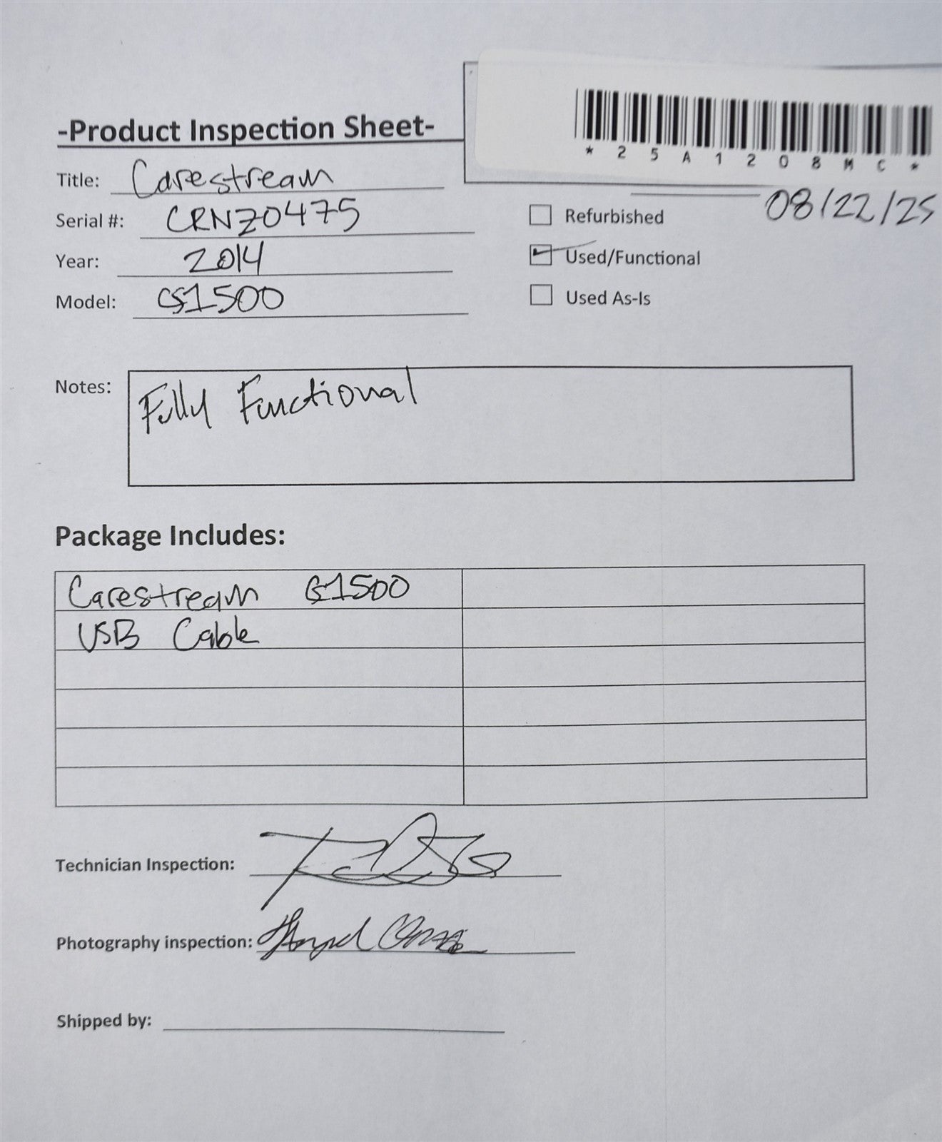 Carestream CS1500, USB Cable