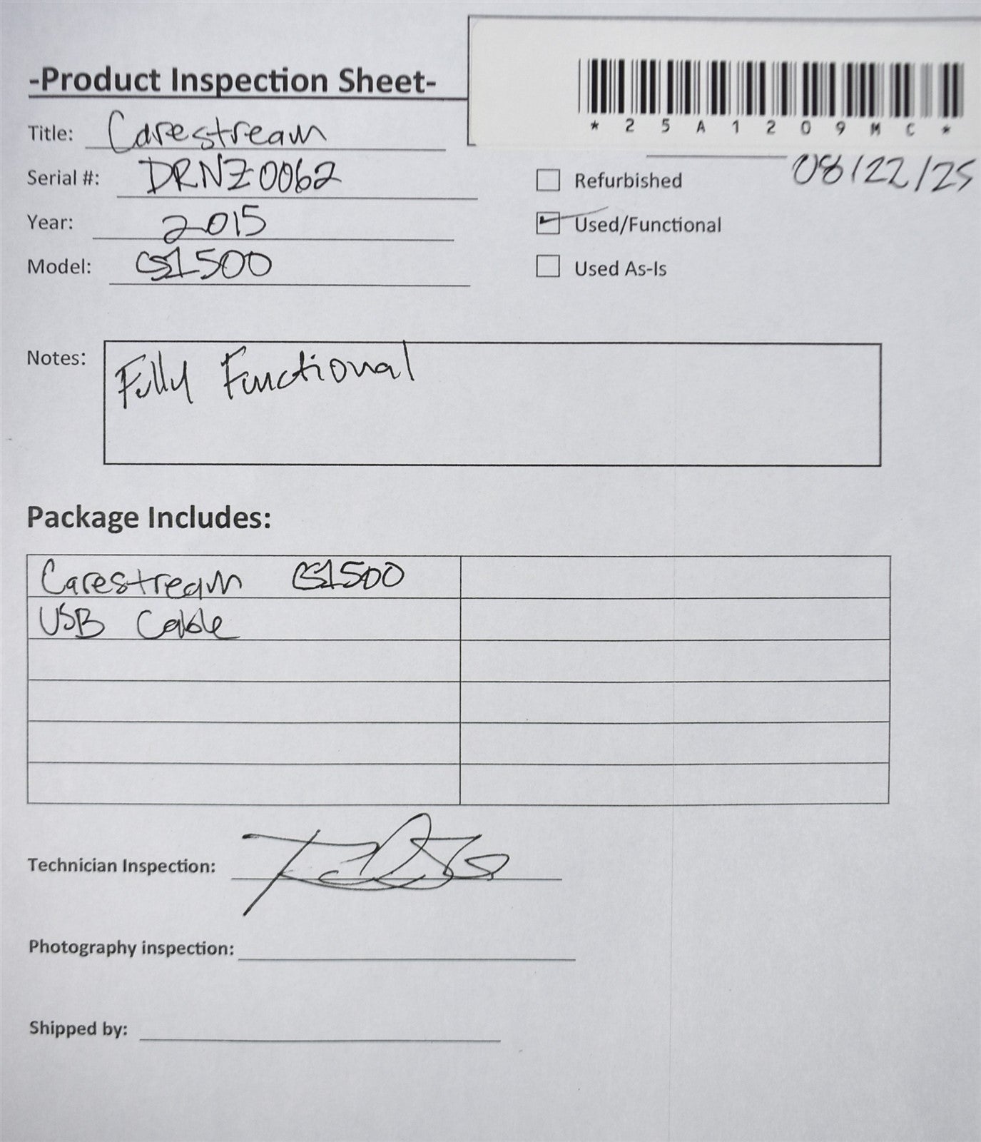 Carestream CS1500, USB Cable