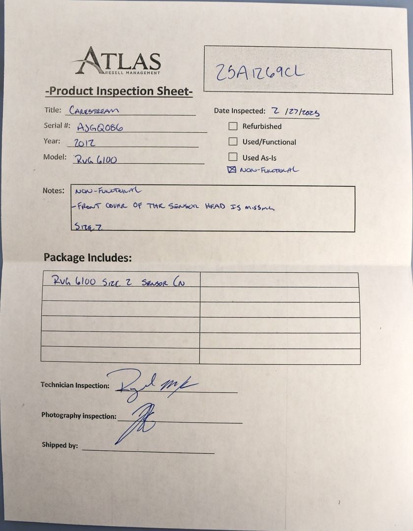 Carestream RVG 6200 Dental Digital Sensor - FOR PARTS/REPAIR