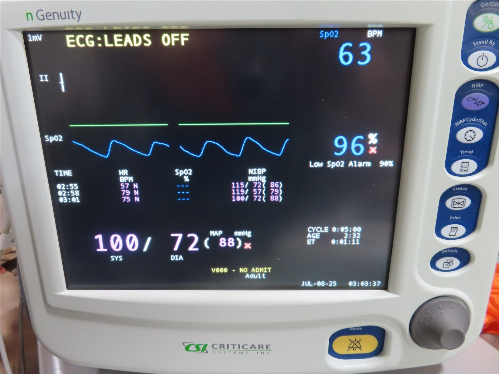 CSI caiticare, 120 volt power cord, Accessories and line, 6 Thermal paper rolls, x3 Blood pressure cuffs, printer.