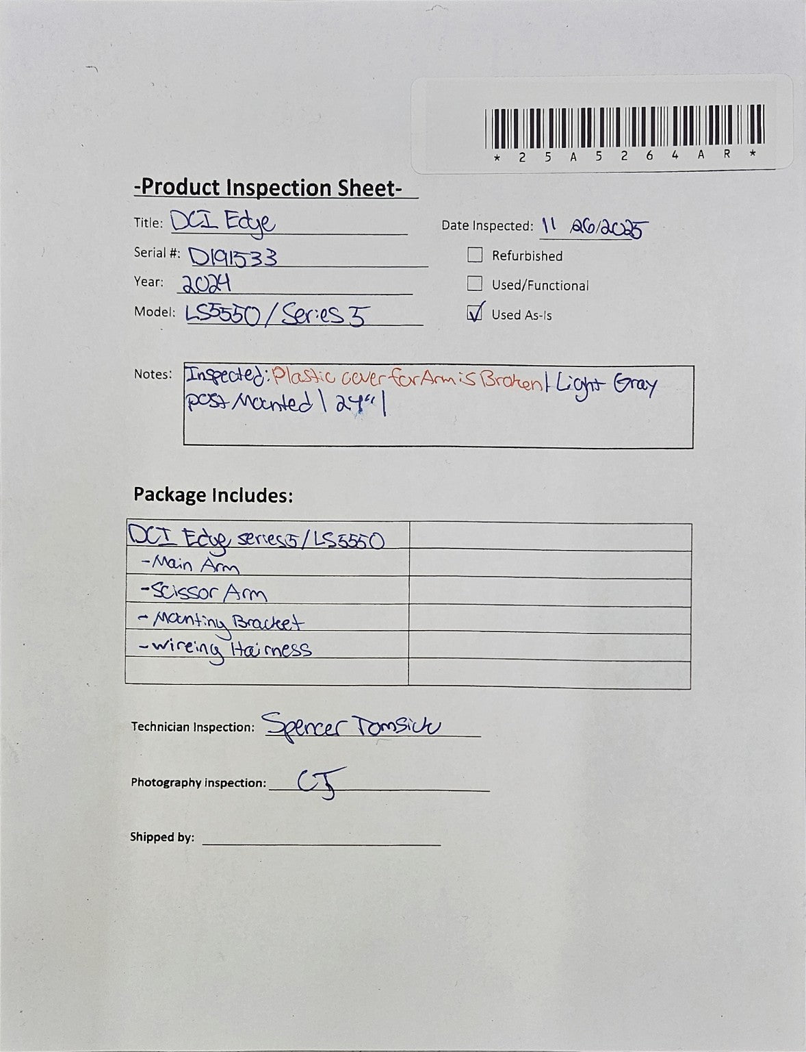 DCI Edge Series 5/LS5550, Bracket, Hardware, Main Arm, Scissor Arm