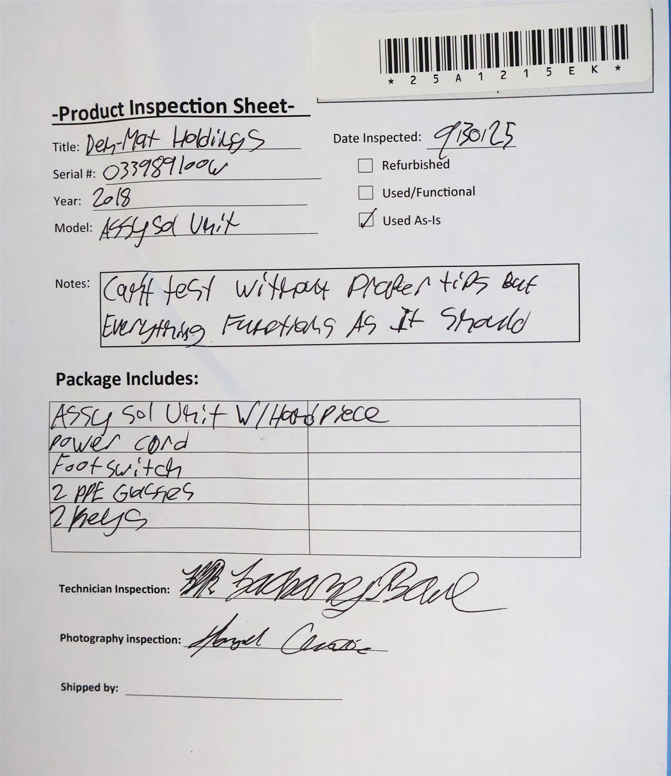 Assy Sol Unit w/Handpiece Power Cord Footswitch 2 PPE Glasses 2 Keys