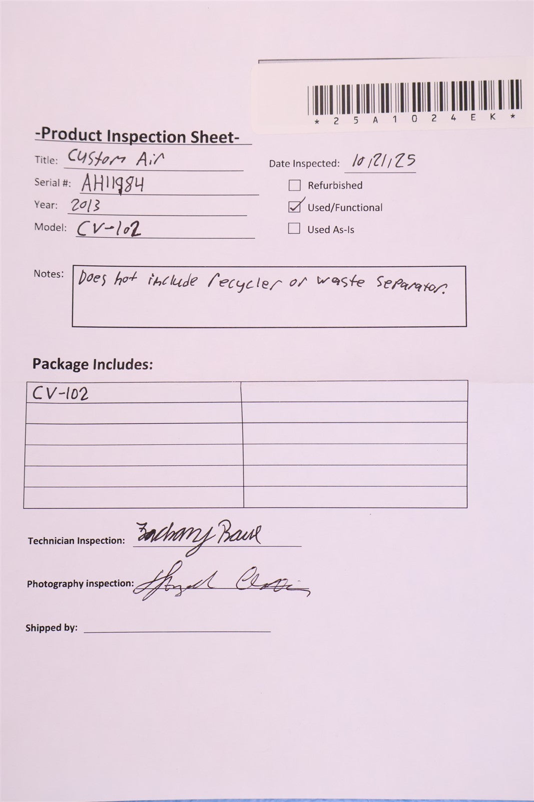 Your purchase will NOT include: Recycler Waste SeparatorThis product is pre-owned and may not include the same accessories as a new, unused unit. - other accessories not shown or listed here.This item has undergone a thorough visual inspection and functional testing to check for any and all defects. The unit has been confirmed to be in complete working condition, with no issues or malfunctions detected.
